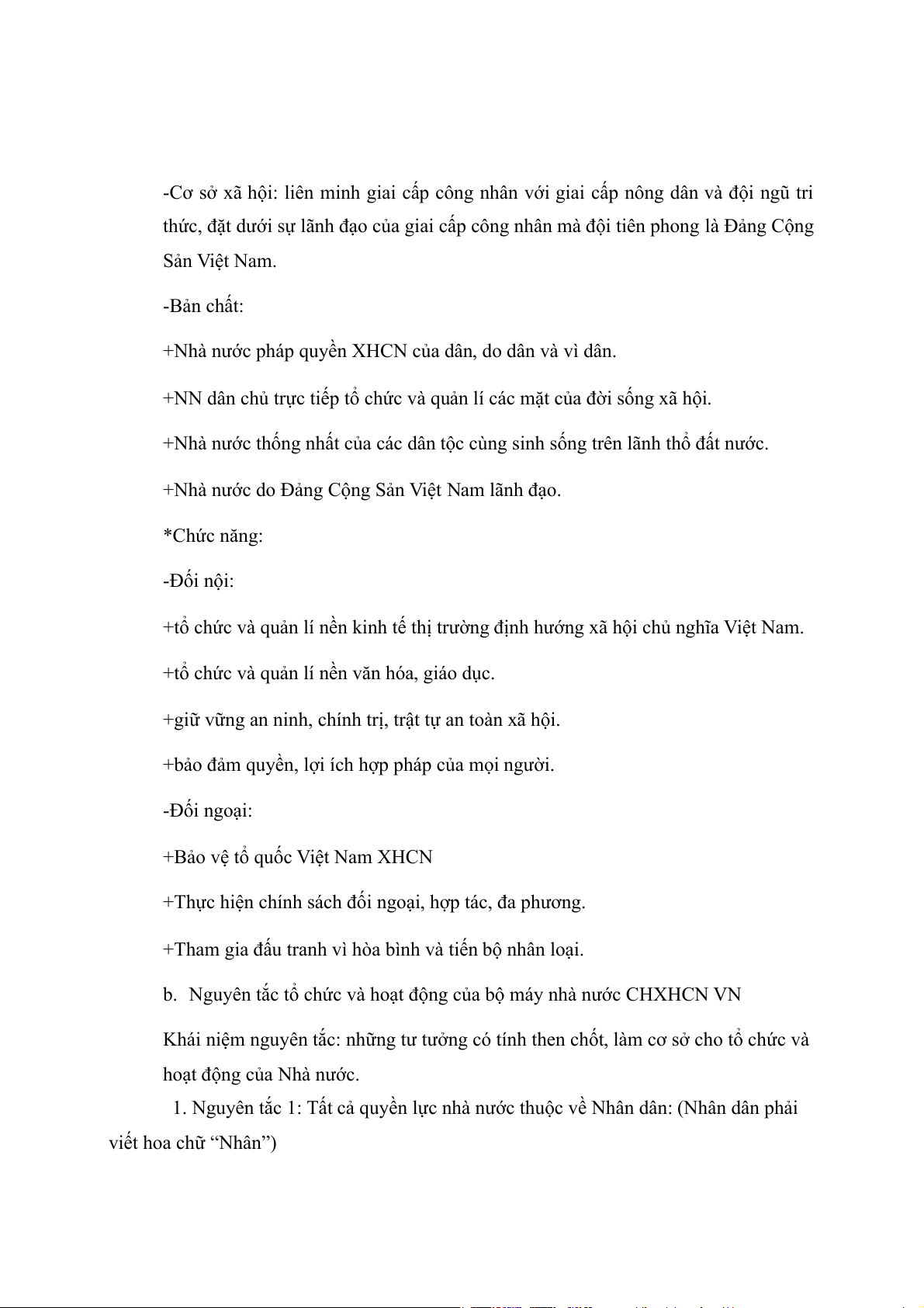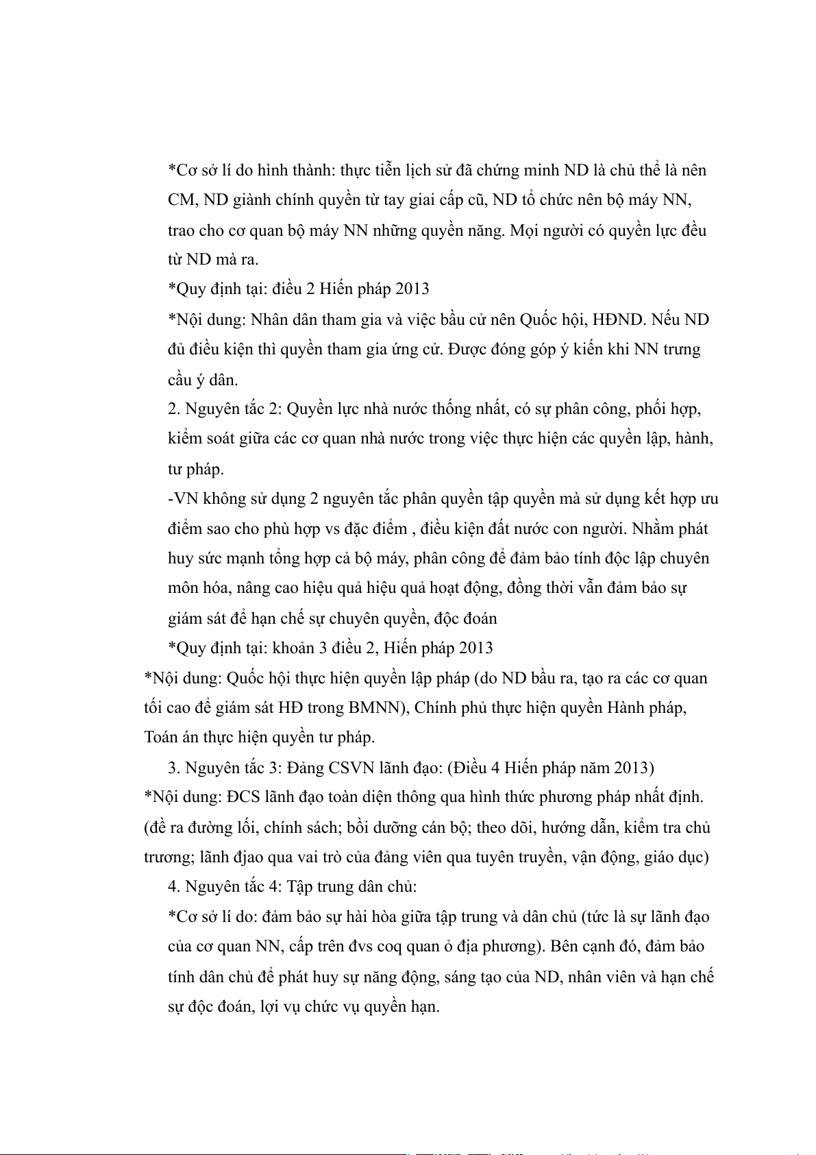 dân, do dân và vì dân), nguyên tắc tập trung dân chủ (bộ máy nhà nước tổ