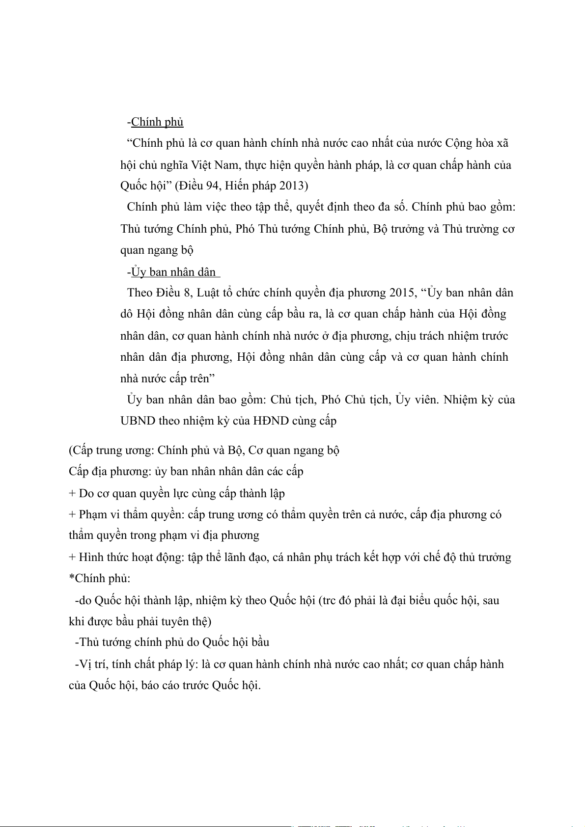 +Cơ quan hành pháp (chính phủ và các cơ quan địa phương): là cơ quan trực