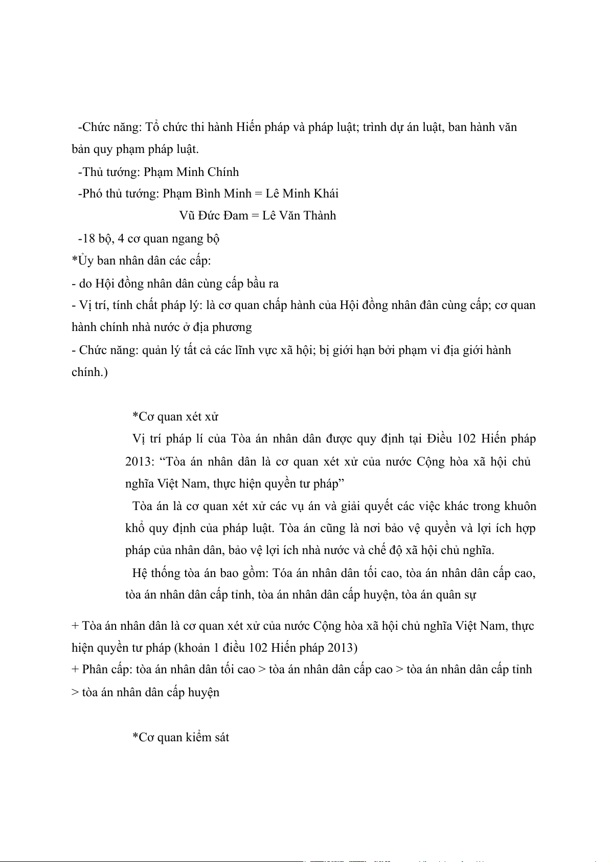 tiếp điều hành, tổ chức, chỉ đạo thực hiện việc thi hành Hiến pháp và pháp luật do Quốc hội thành lập. +Cơ quan tư pháp