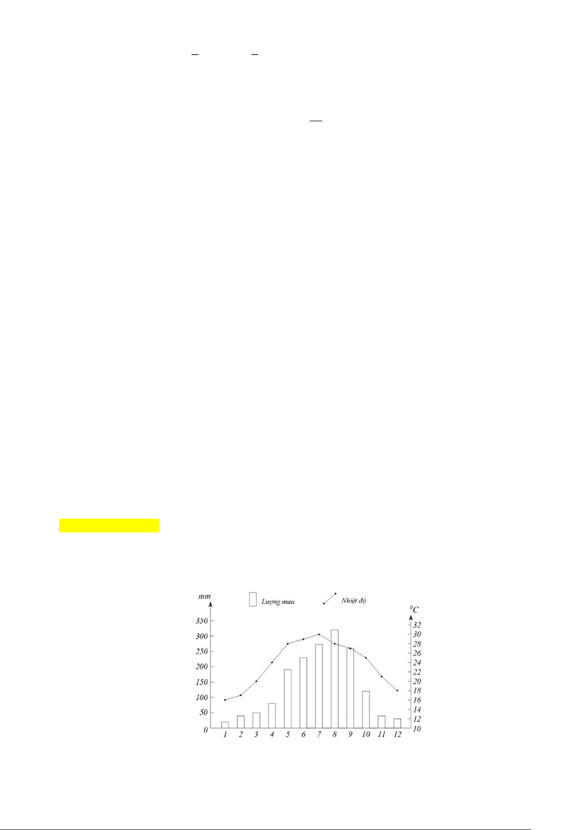 Bài 1. Cho biểu đồ về lượng mưa và nhiệt độ năm 2022 của Hà Nội