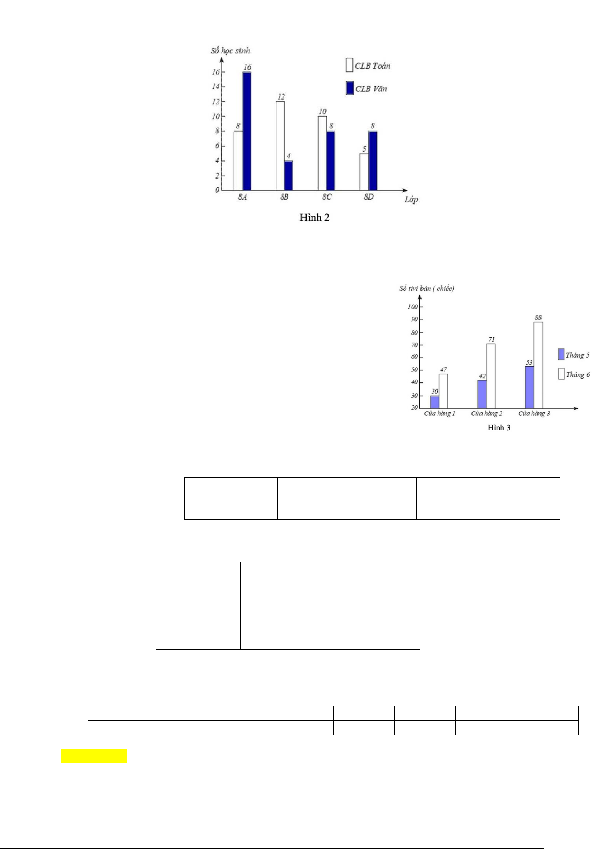 Bài 3. Biểu đồ ở Hình 6 thống kê số lượng ti vi bán được của ba cửa hàng trong tháng 5 và tháng 6 của năm 2018.