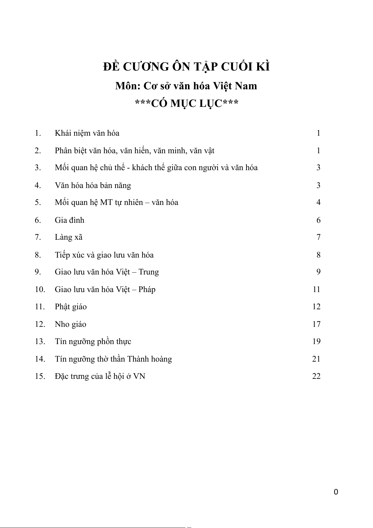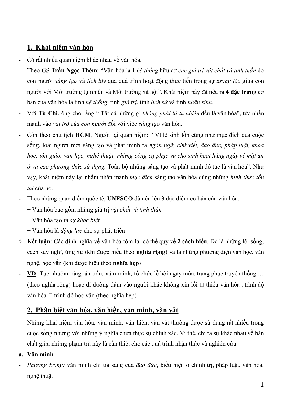 Môn: Cơ sở văn hóa Việt Nam ***CÓ MỤC LỤC*** 1. Khái niệm văn hóa 1 2.