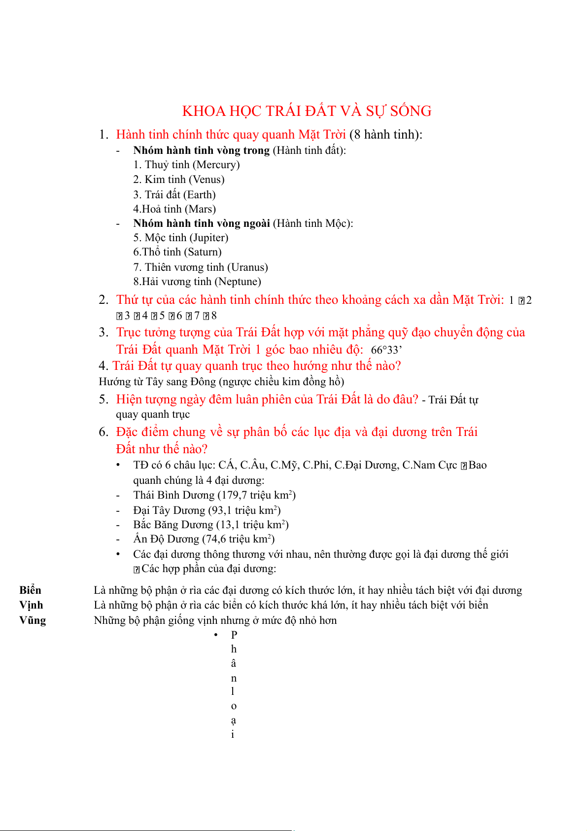 KHOA HỌC TRÁI ĐẤT VÀ SỰ SỐNG