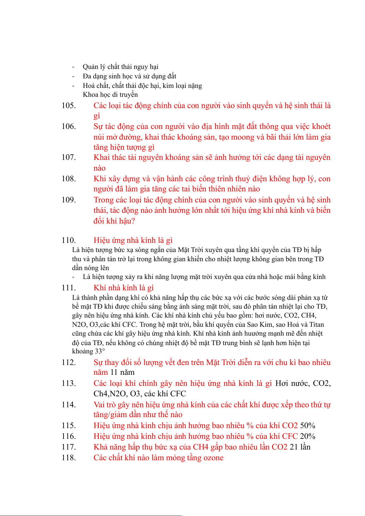 thái, tác động nào ảnh hưởng lớn nhất tới hiệu ứng khí nhà kính và biến đổi khí hậu? 110.