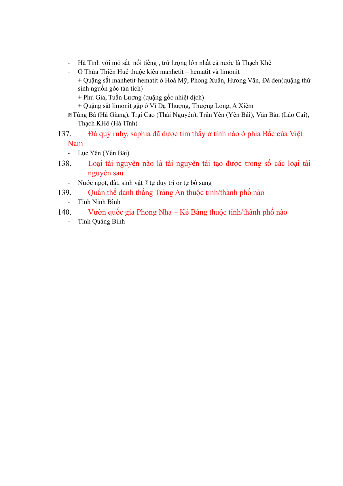 Đá quý ruby, saphia đã được tìm thấy ở tỉnh nào ở phía Bắc của Việt Nam - Lục Yên (Yên Bái) 138.