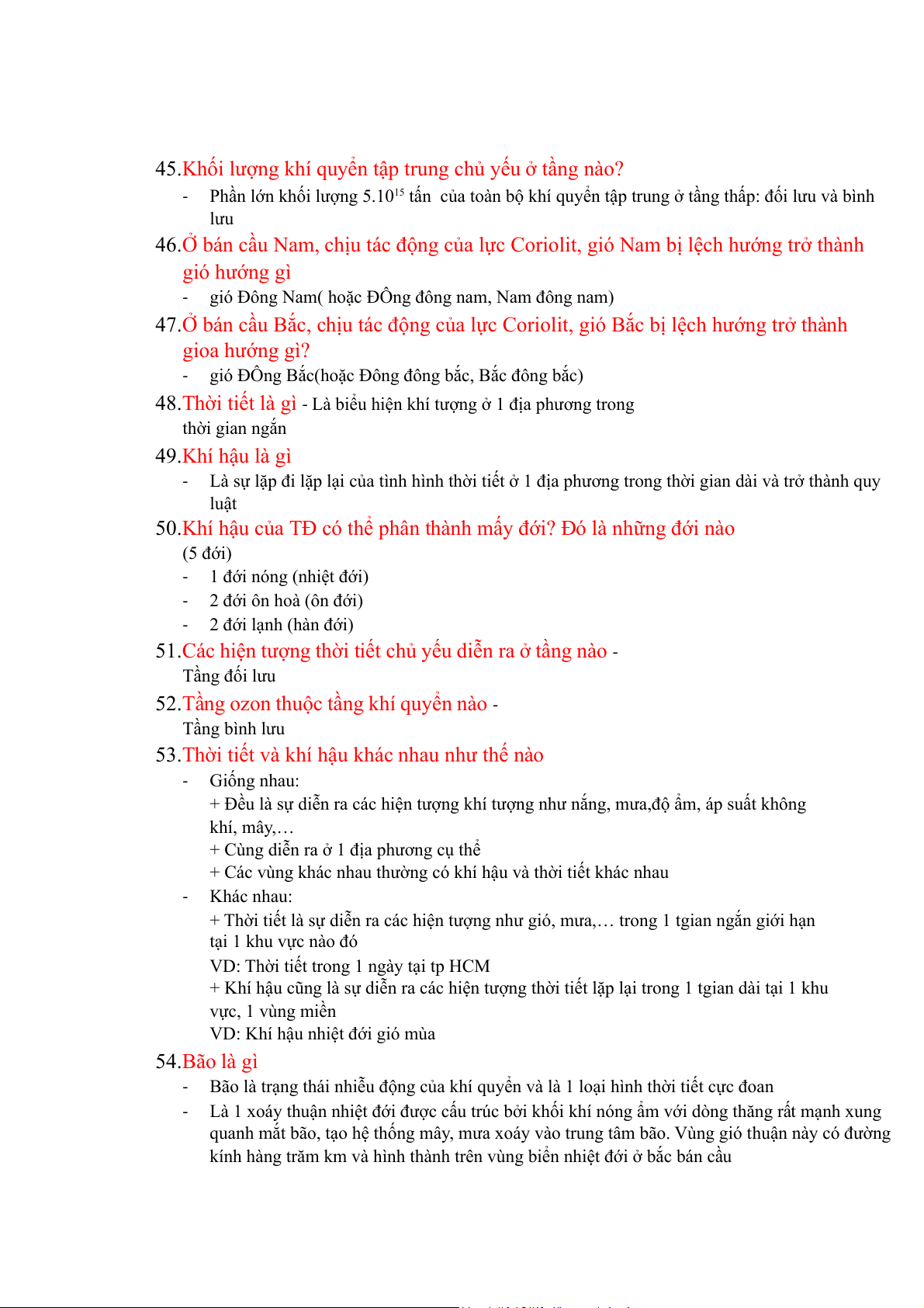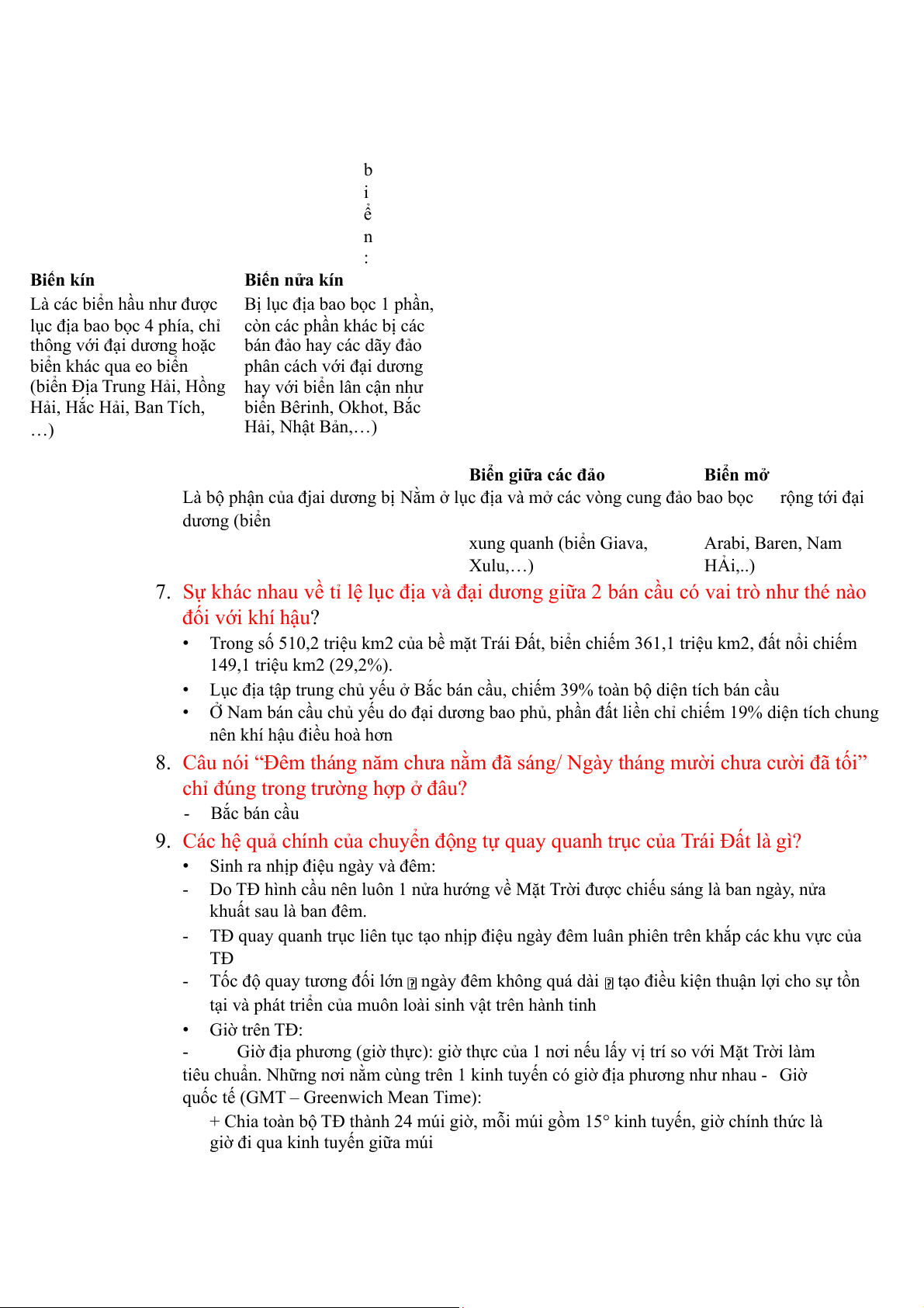 7. Sự khác nhau về tỉ lệ lục địa và đại dương giữa 2 bán cầu có vai trò như thé nào đối với khí hậu?