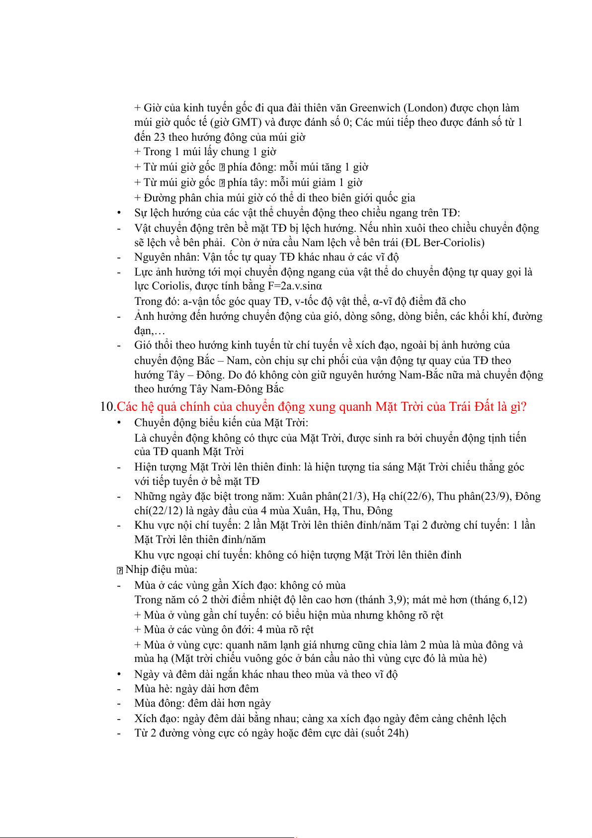 10.Các hệ quả chính của chuyển động xung quanh Mặt Trời của Trái Đất là gì?