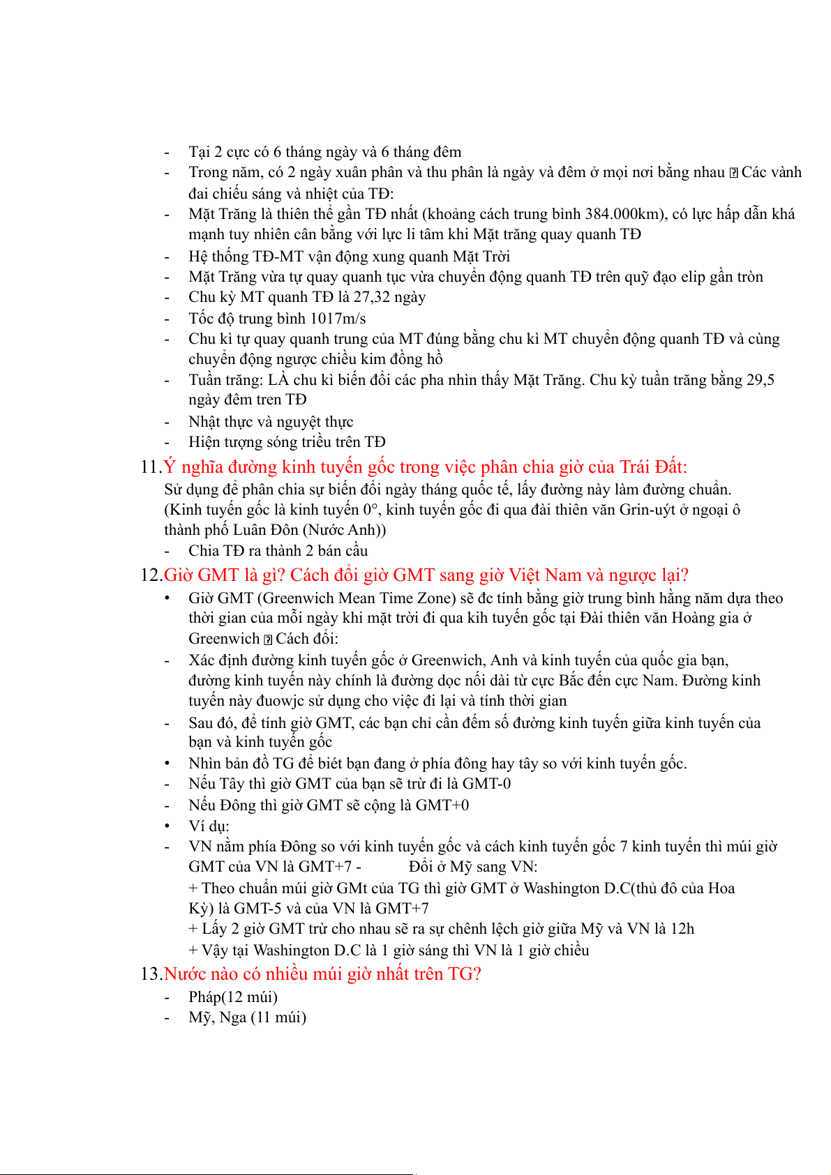 + Chia toàn bộ TĐ thành 24 múi giờ, mỗi múi gồm 15° kinh tuyến, giờ chính thức là