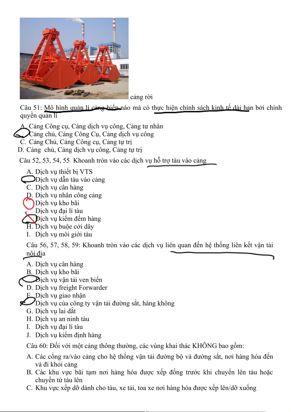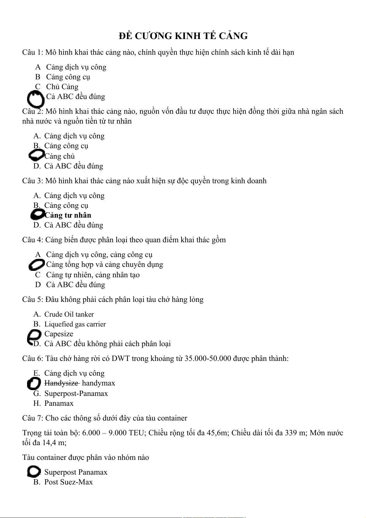 Câu 1: Mô hình khai thác cảng nào, chính quyền thực hiện chính sách kinh tế dài hạn A Cảng dịch vụ công B Cảng công cụ C Chủ Cảng Cả ABC đều đúng