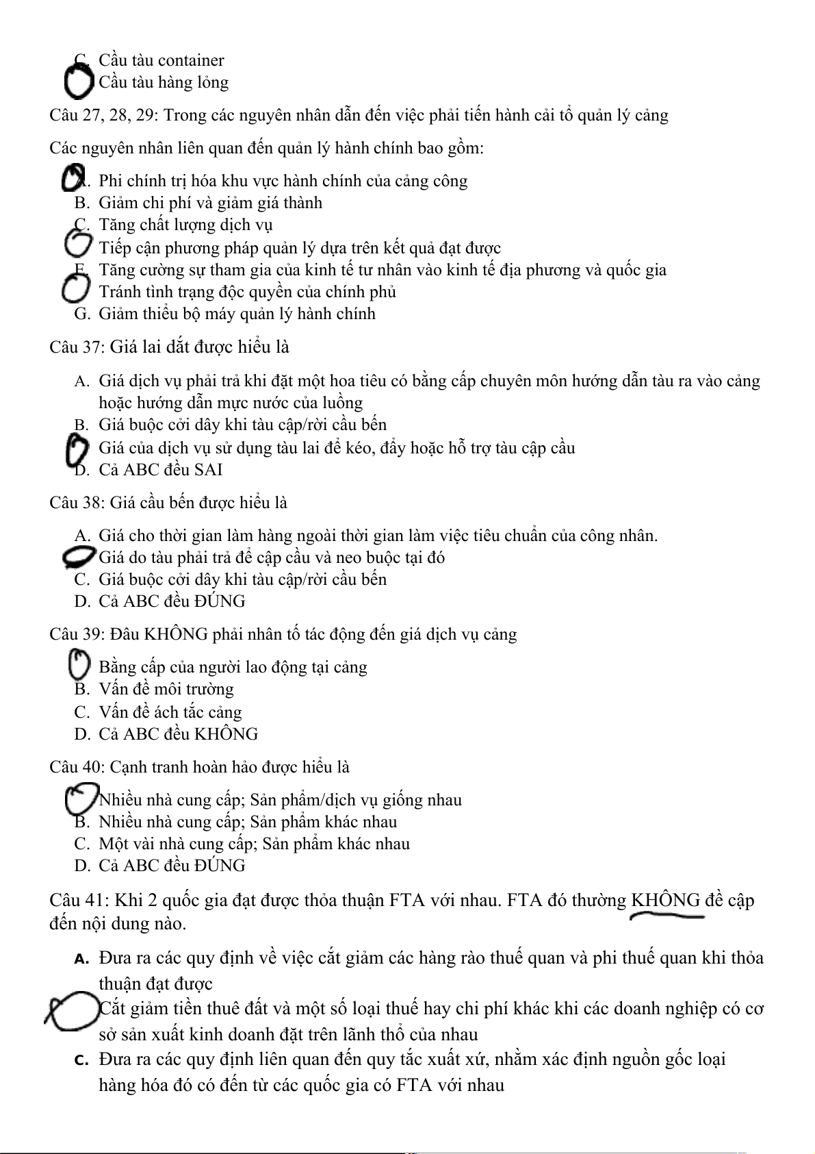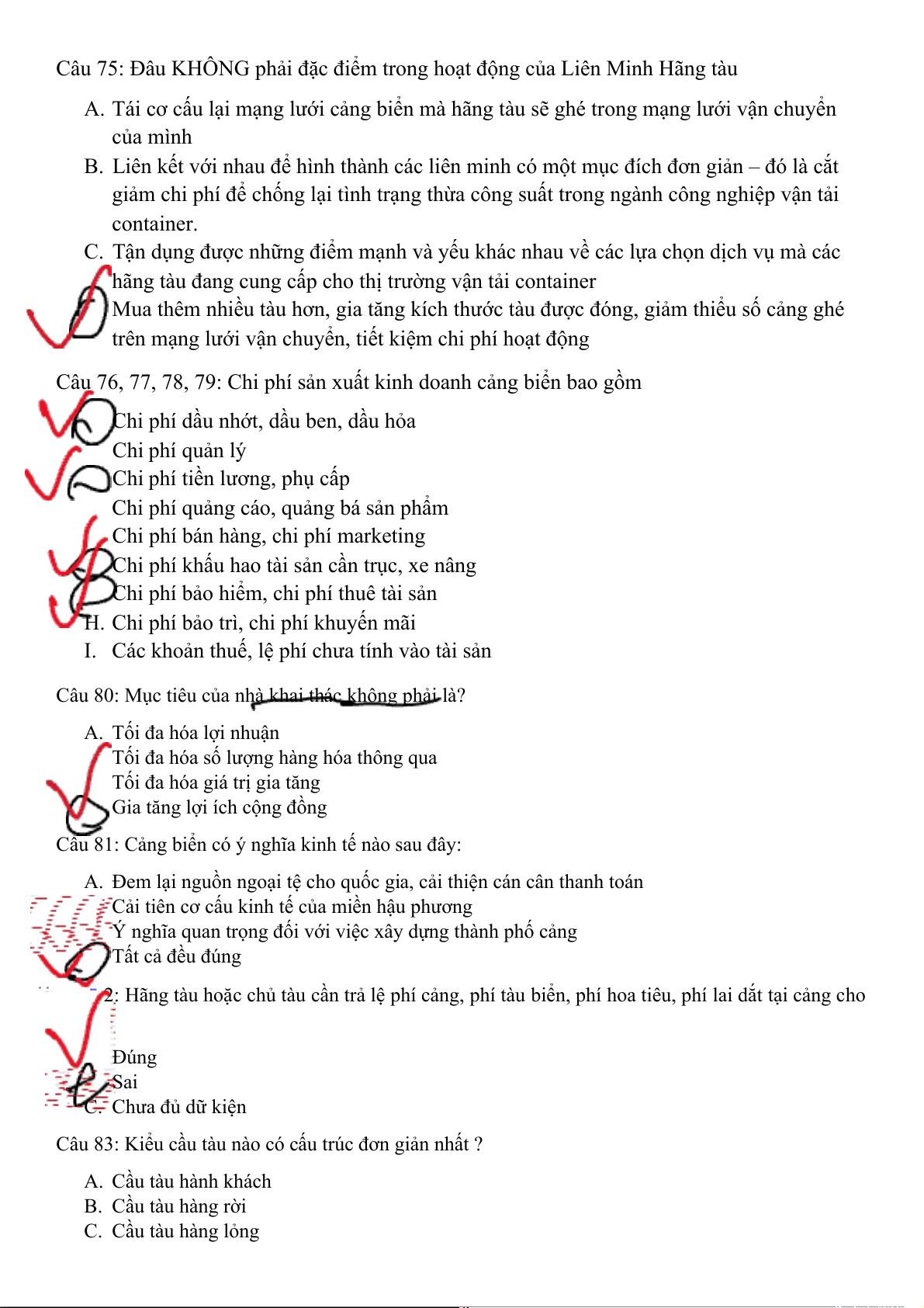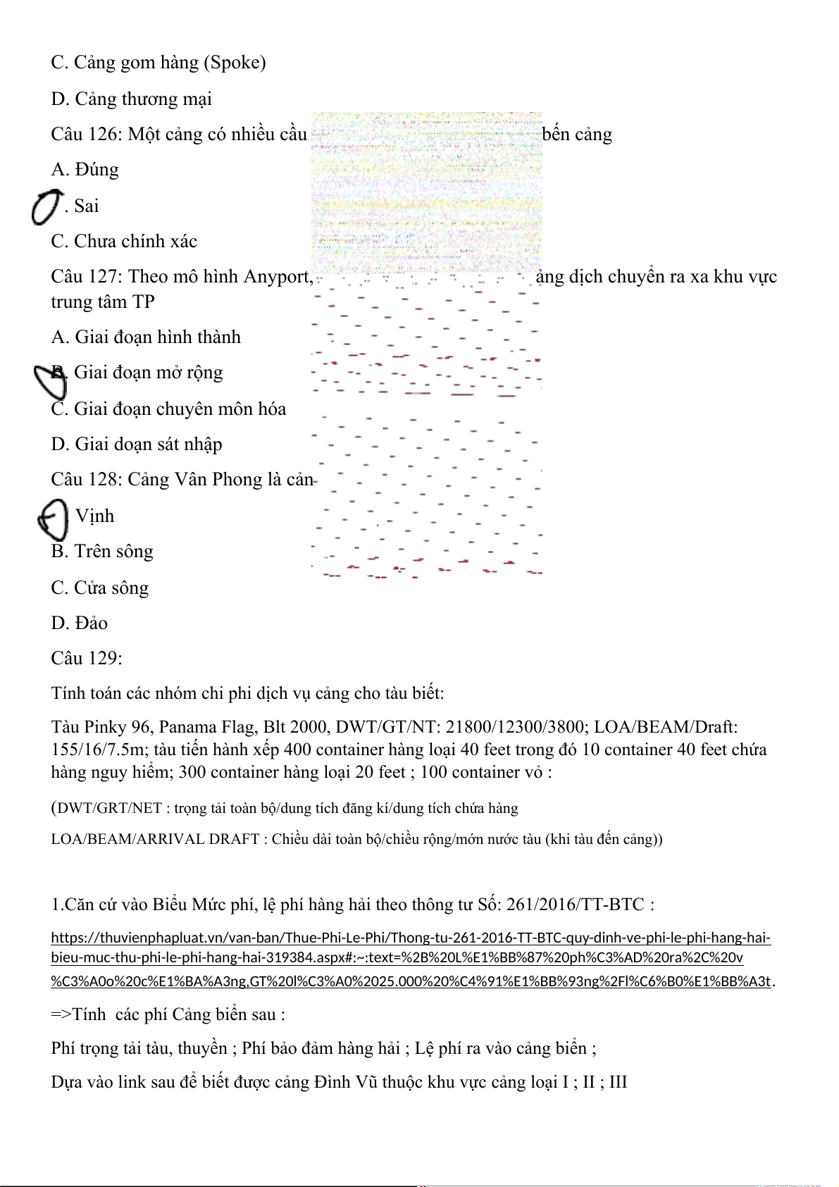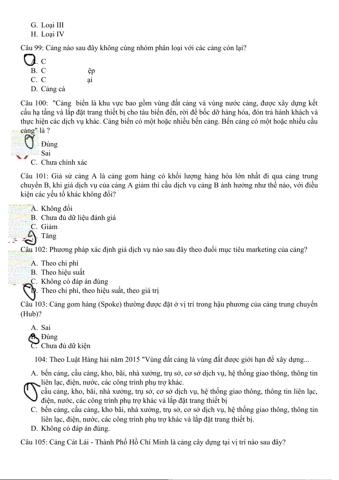 Câu 126: Một cảng có nhiều cầu bến cảng A. Đúng . Sai C. Chưa chính xác