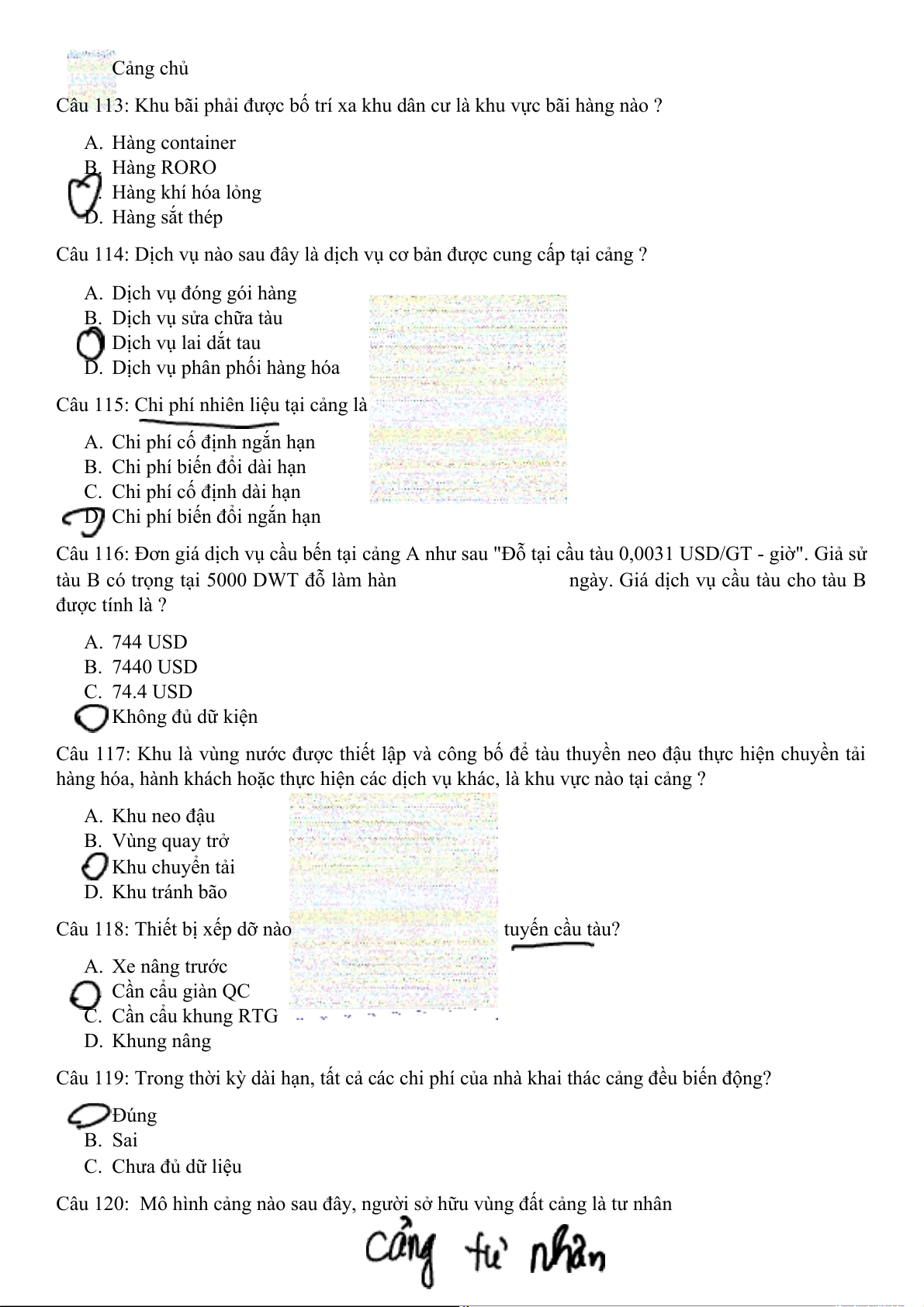 Câu 110: Nhà khai thác cảng không phải là ai sau đây? A. Chính quyền cảng