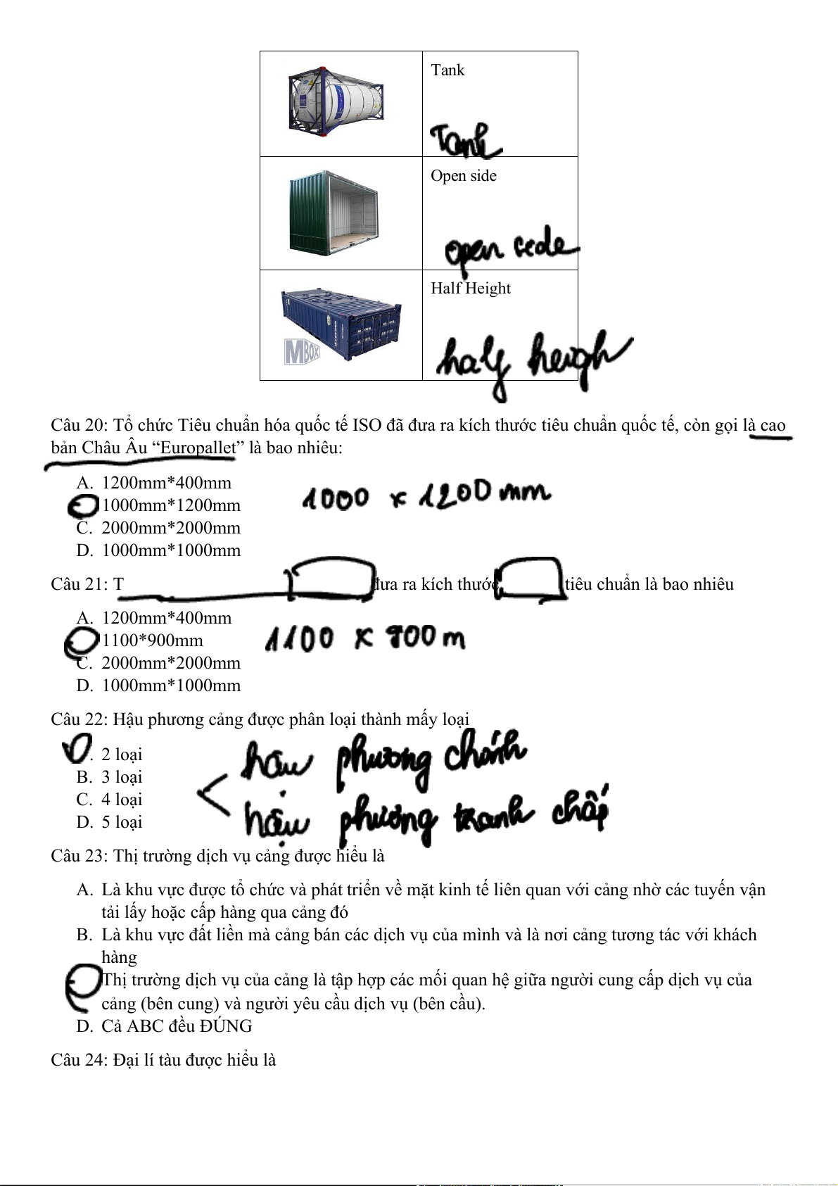bản Châu Âu “Europallet” là bao nhiêu: A. 1200mm*400mm 1000mm*1200mm C. 2000mm*2000mm D. 1000mm*1000mm Câu 21: T đưa ra kích thước tiêu chuẩn là bao nhiêu A. 1200mm*400mm 1100*900mm C. 2000mm*2000mm D. 1000mm*1000mm