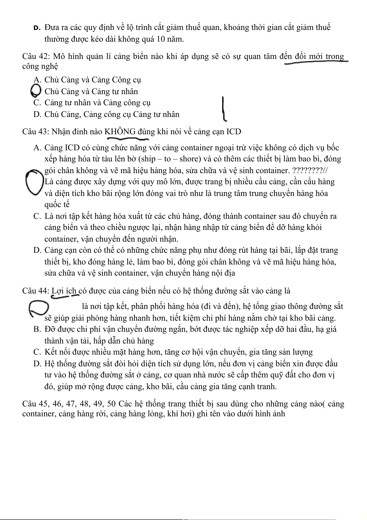 Câu 42: Mô hình quản lí cảng biển nào khi áp dụng sẽ có sự quan tâm đến đổi mới trong công nghệ