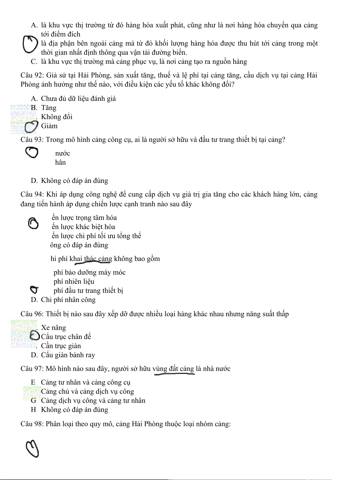 Câu 93: Trong mô hình cảng công cụ, ai là người sở hữu và đầu tư trang thiết bị tại cảng? nước hân D. Không có đáp án đúng