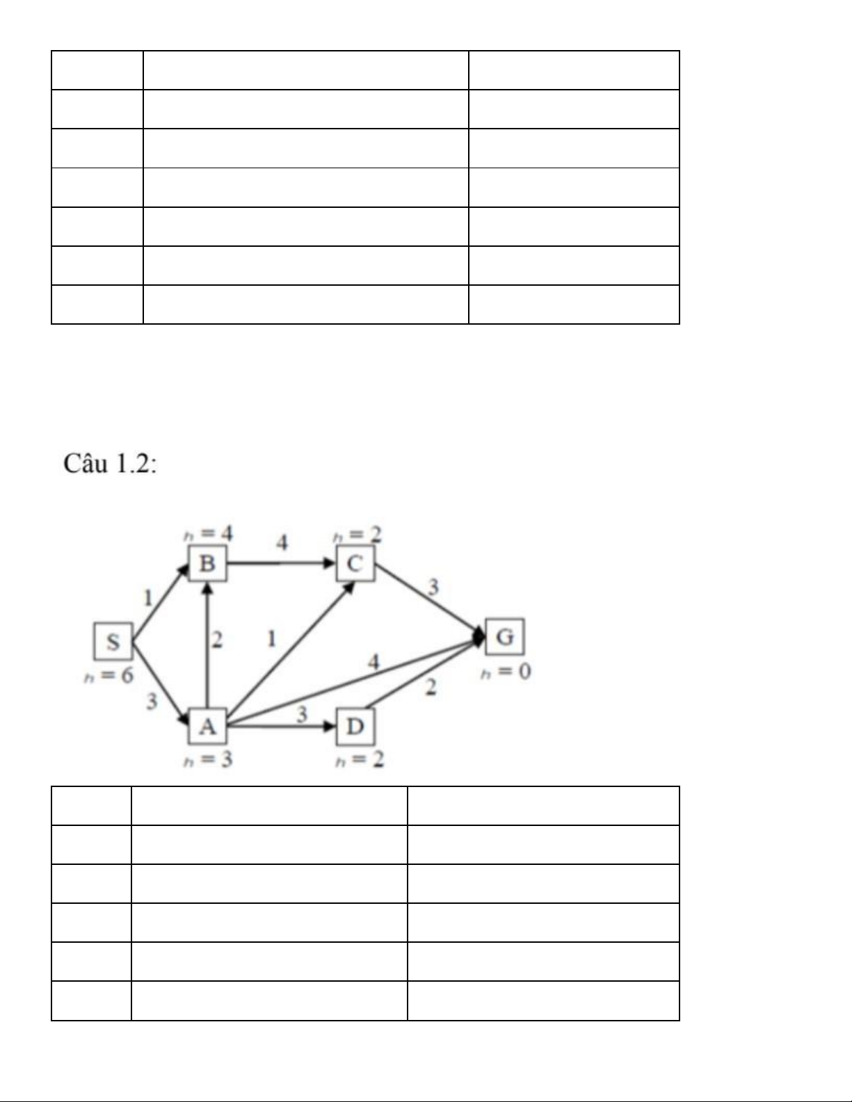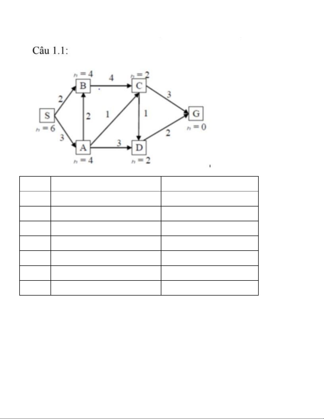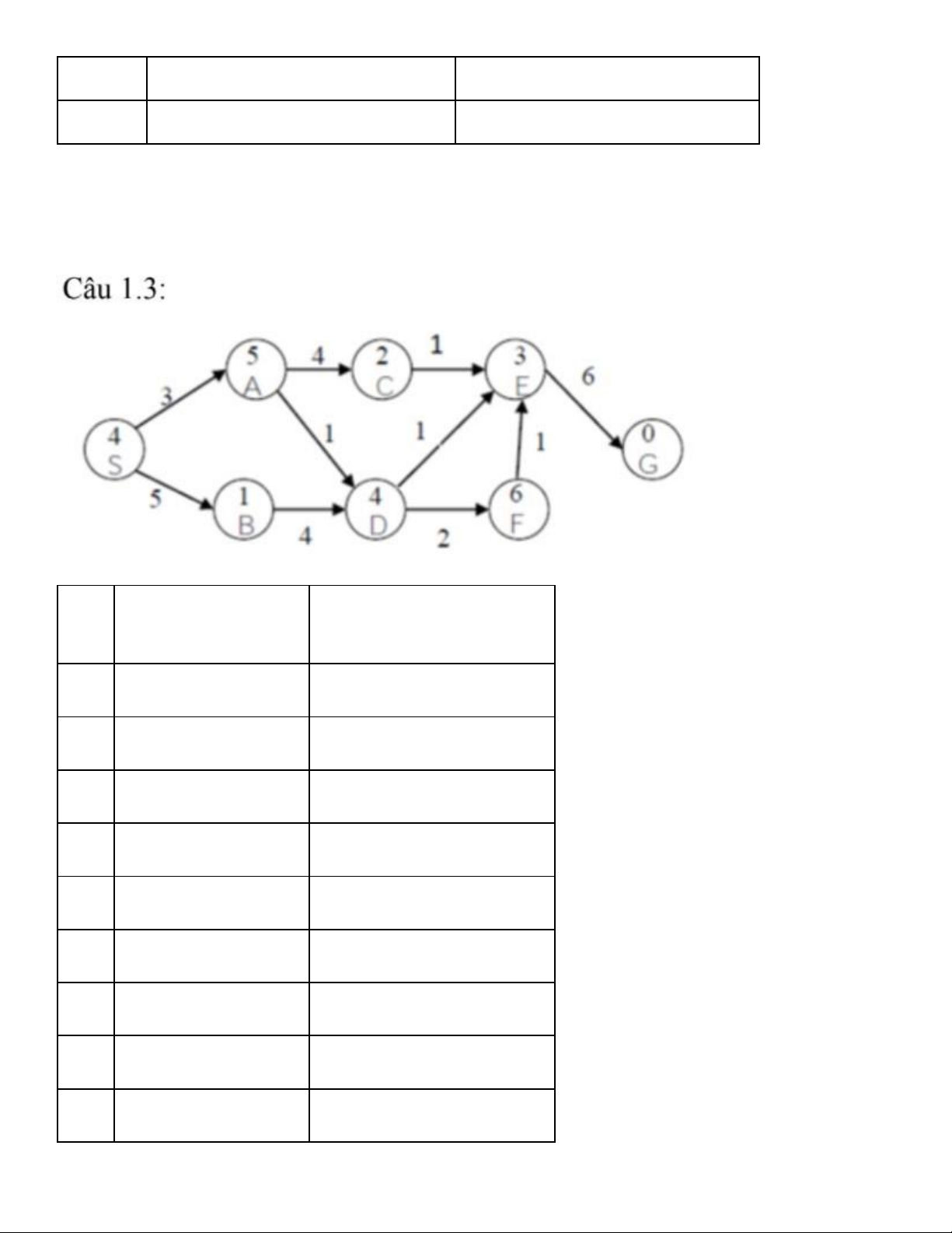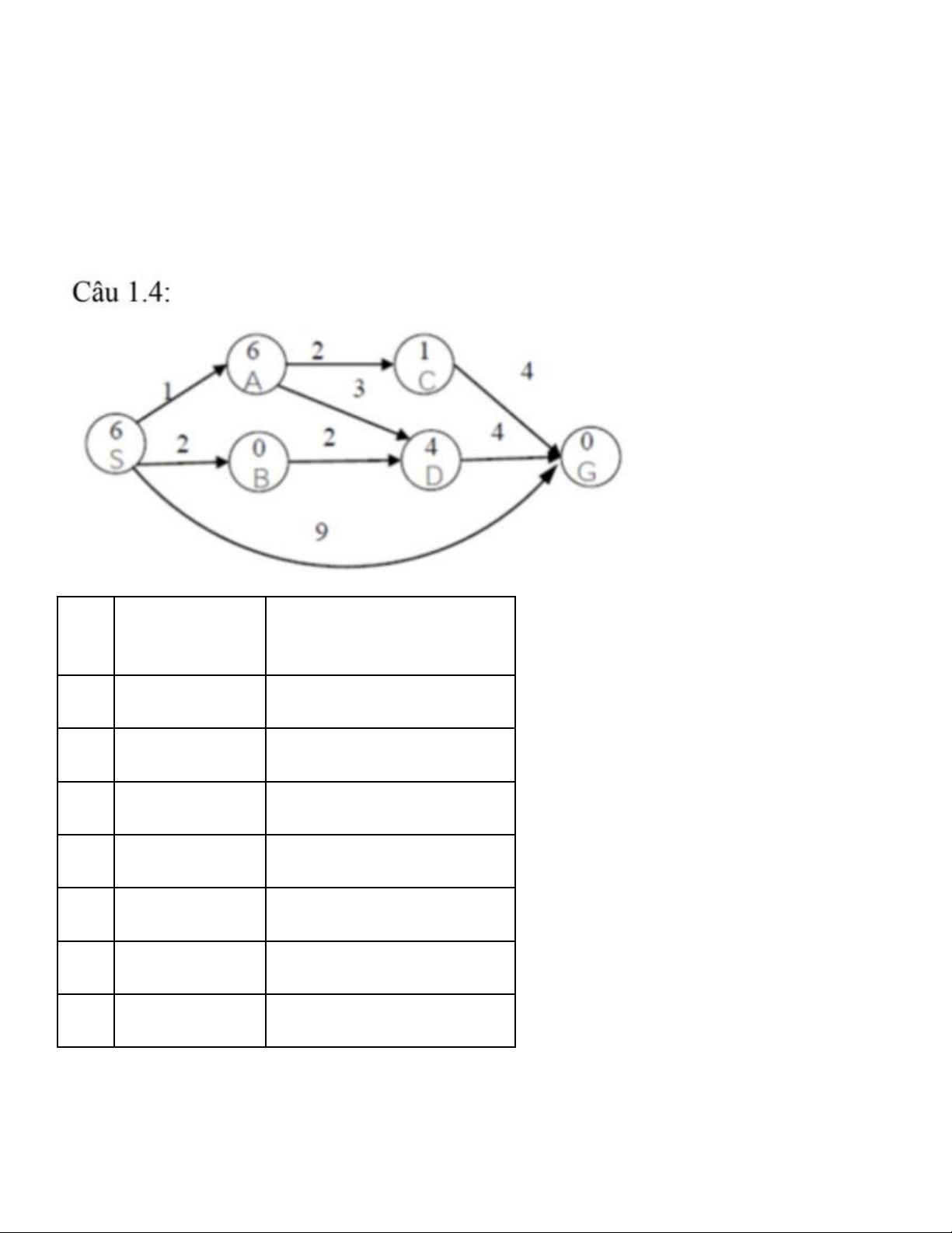 b. 1 trong 3 thuật toán tìm kiếm có thông tin ( A*, tham lam, IDA*) Câu 2: 2 điểm
