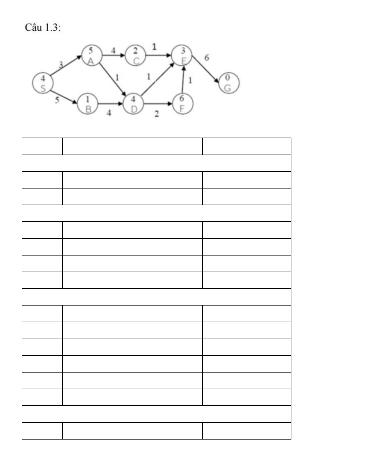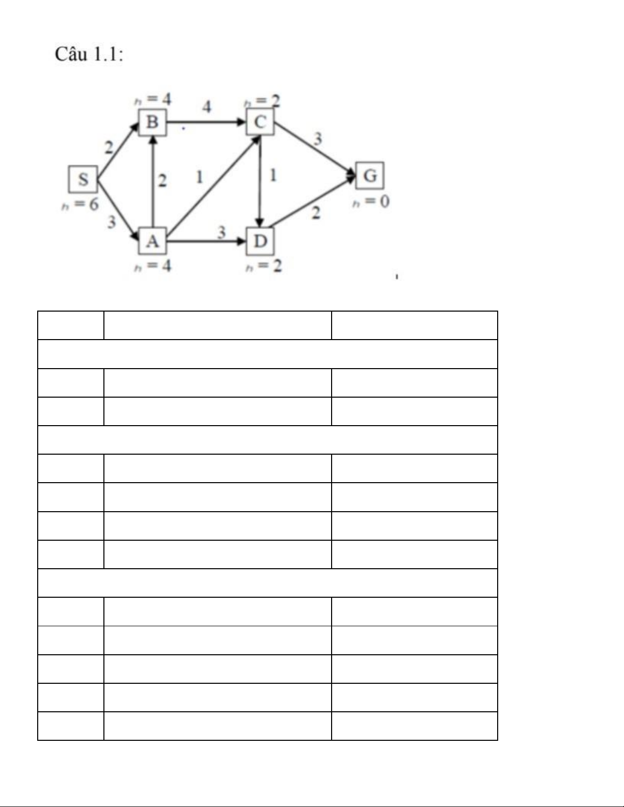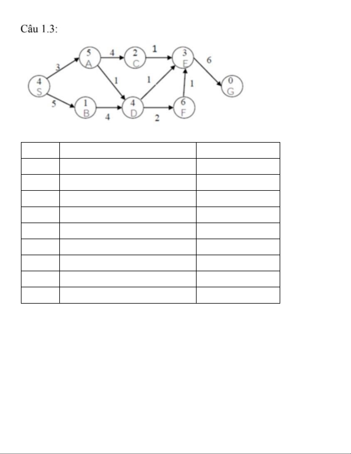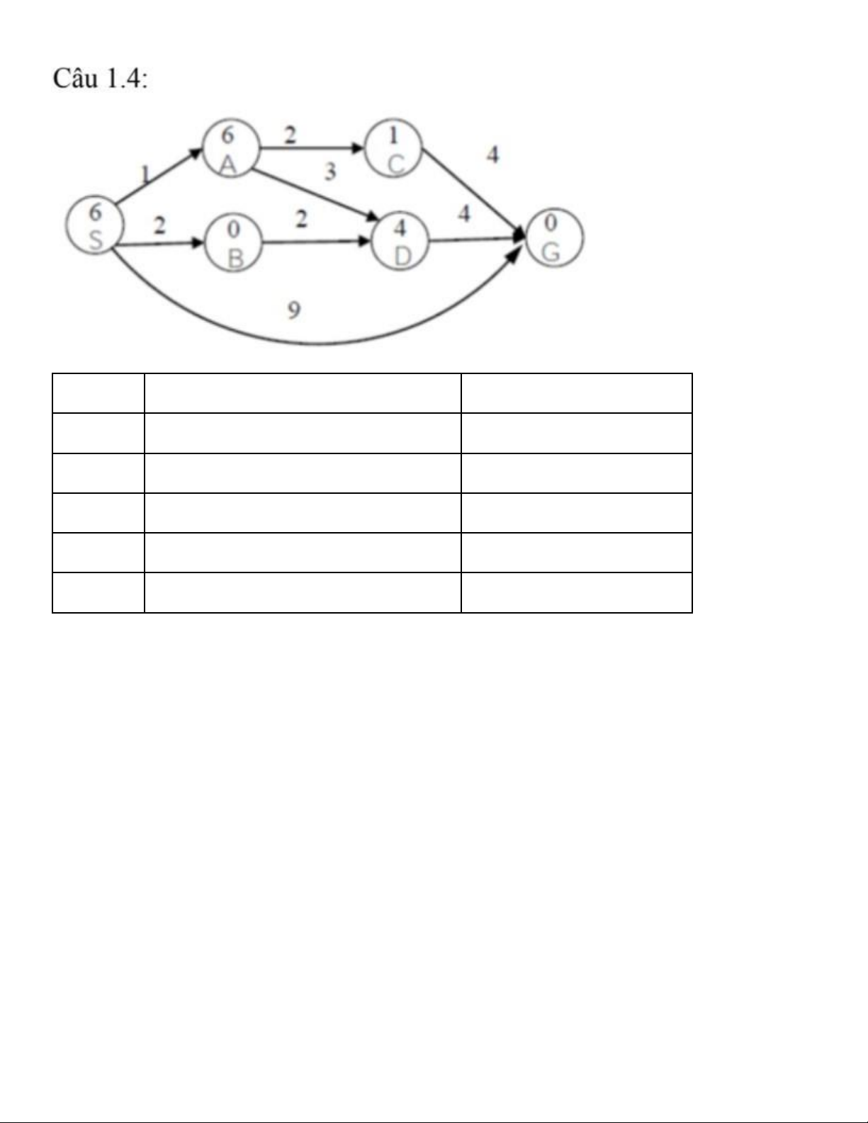 b. 1 trong 3 thuật toán tìm kiếm có thông tin ( A*, tham lam, IDA*) Câu 2: 2 điểm