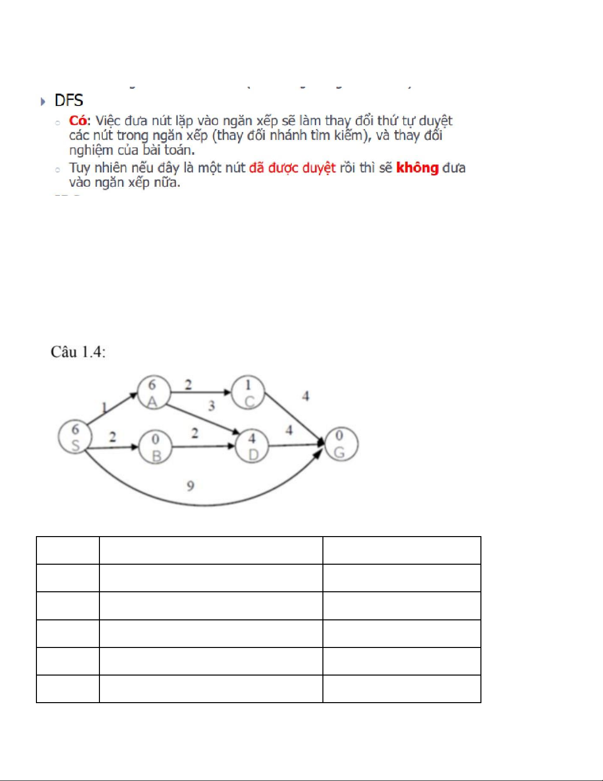 Đường đi: G← D← C← B← A← S Độ sâu d = 5 Ví dụ 2.3: lOMoAR cPSD| 45734214 DFS STT Nút được mở rộng Tập biên O 0 S 1 S As,Bs 2 As Ba,Ca,Da,Ga,Bs 3 Ba Cb,Ca,Da,Ga,Bs 4 Cb Gc,Ca,Da,Ga,Bs 5 Gc Đích