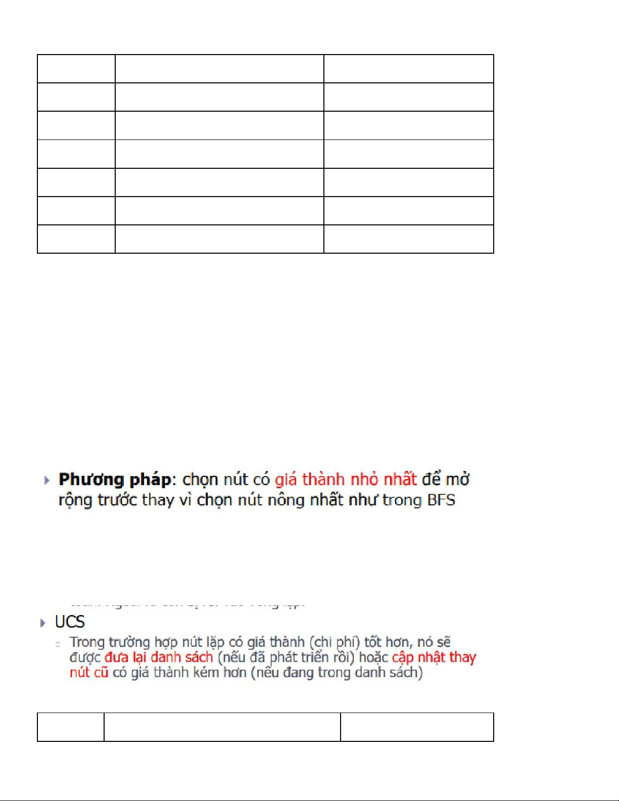 Đường đi: G← E← D← A← S lOMoAR cPSD| 45734214 chi phí c = 11 Ví dụ 3.4: STT Nút được Tập biên O mở 0 S 1 S As(1),Bs(2),Gs(9) 2 As Bs(2),Gs(9),Ca(3),Da(4) 3 Bs Gs(9),Ca(3),Da(4) 4 Ca Gc(7),Da(4) 5 Da Gc(7) 6 Gc Đích