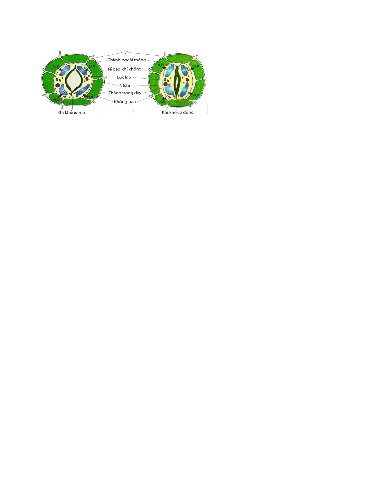hưởng đến sự trương nước hay mất nước của tế bào khí khổng?   Đáp án là: