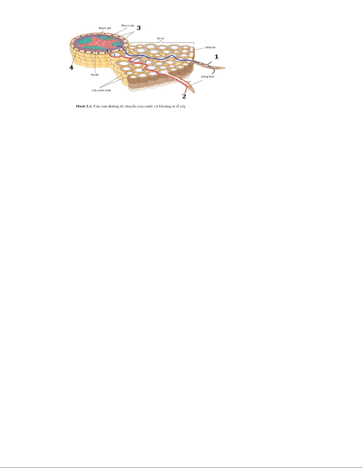 khoáng được vận chuyển từ lông hút vào mạch gỗ của rễ theo mấy con đường?  Đáp án là: