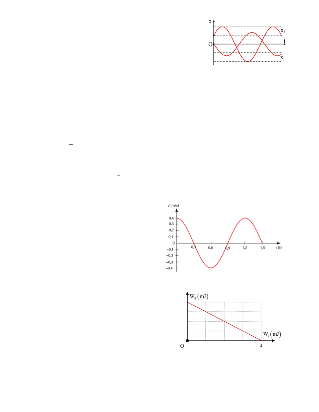 Câu 5: Đồ thị li độ theo thời gian x1, x2 của hai chất điểm dao động điều hoà được mô tả như hình bên dưới