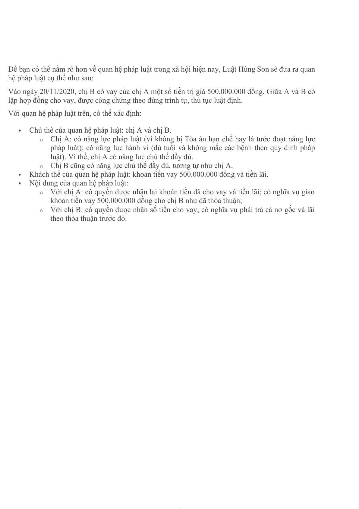 Khách thể của quan hệ pháp luật: khoản tiền vay 500.000.000 đồng và tiền lãi.