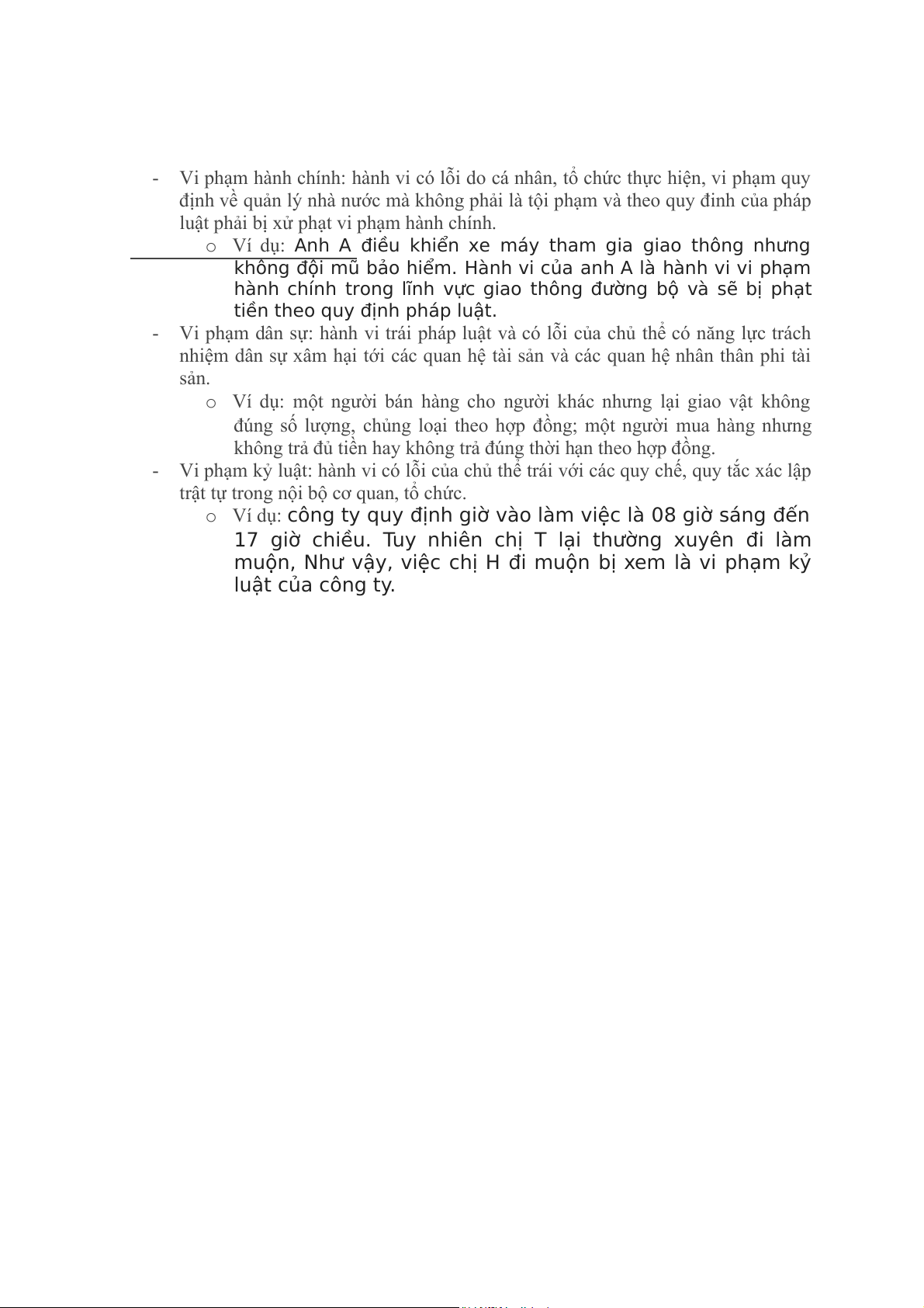- Vi phạm dân sự: hành vi trái pháp luật và có lỗi của chủ thể có năng lực trách