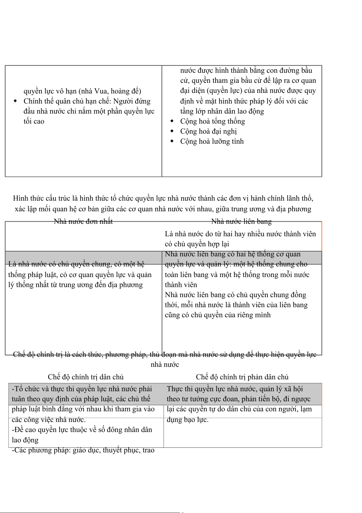 chính thể, hình thức cấu trúc và chế độ chính trị.