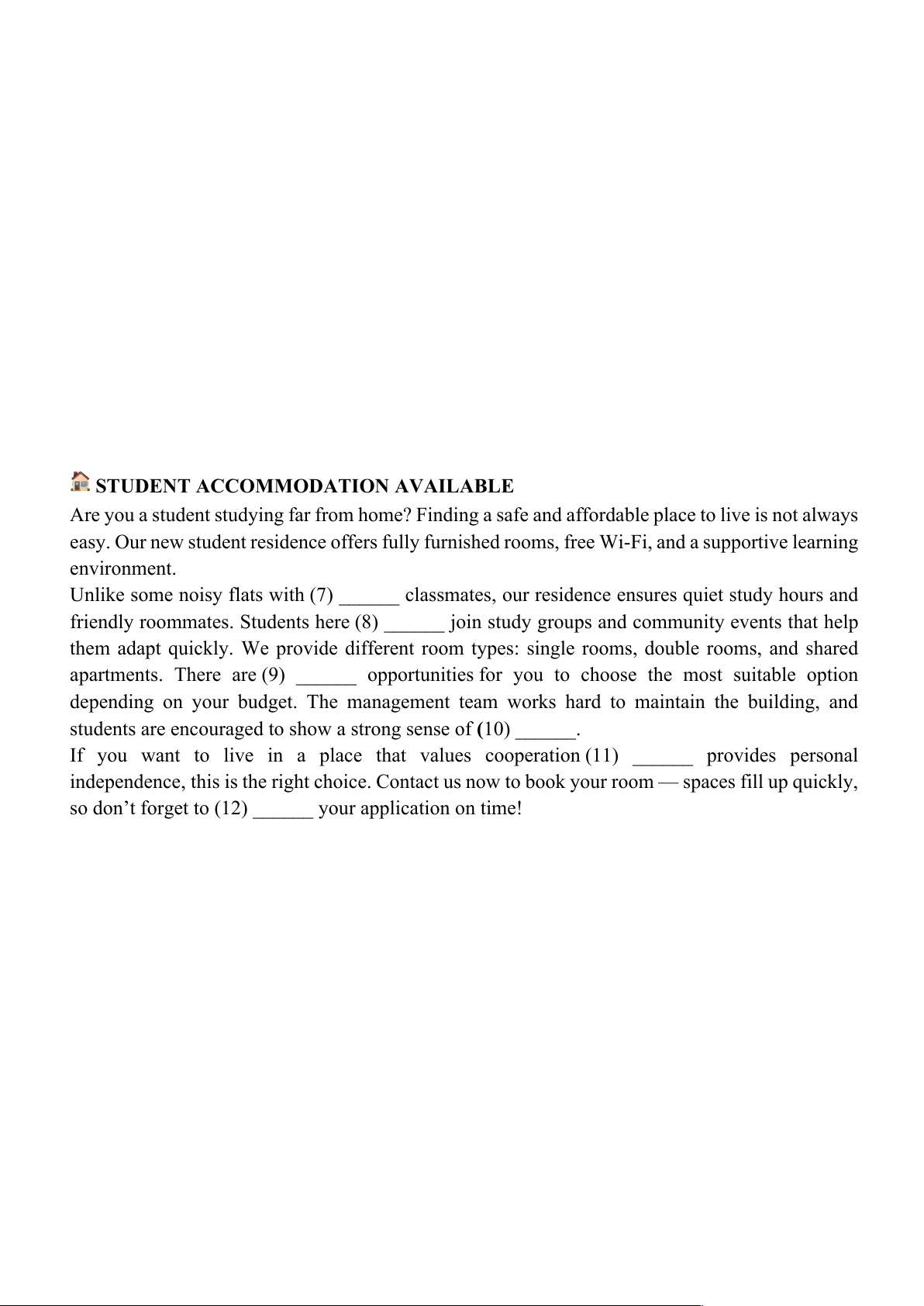 - Time allowed: 50 minutes - Question types: Short words/phrases