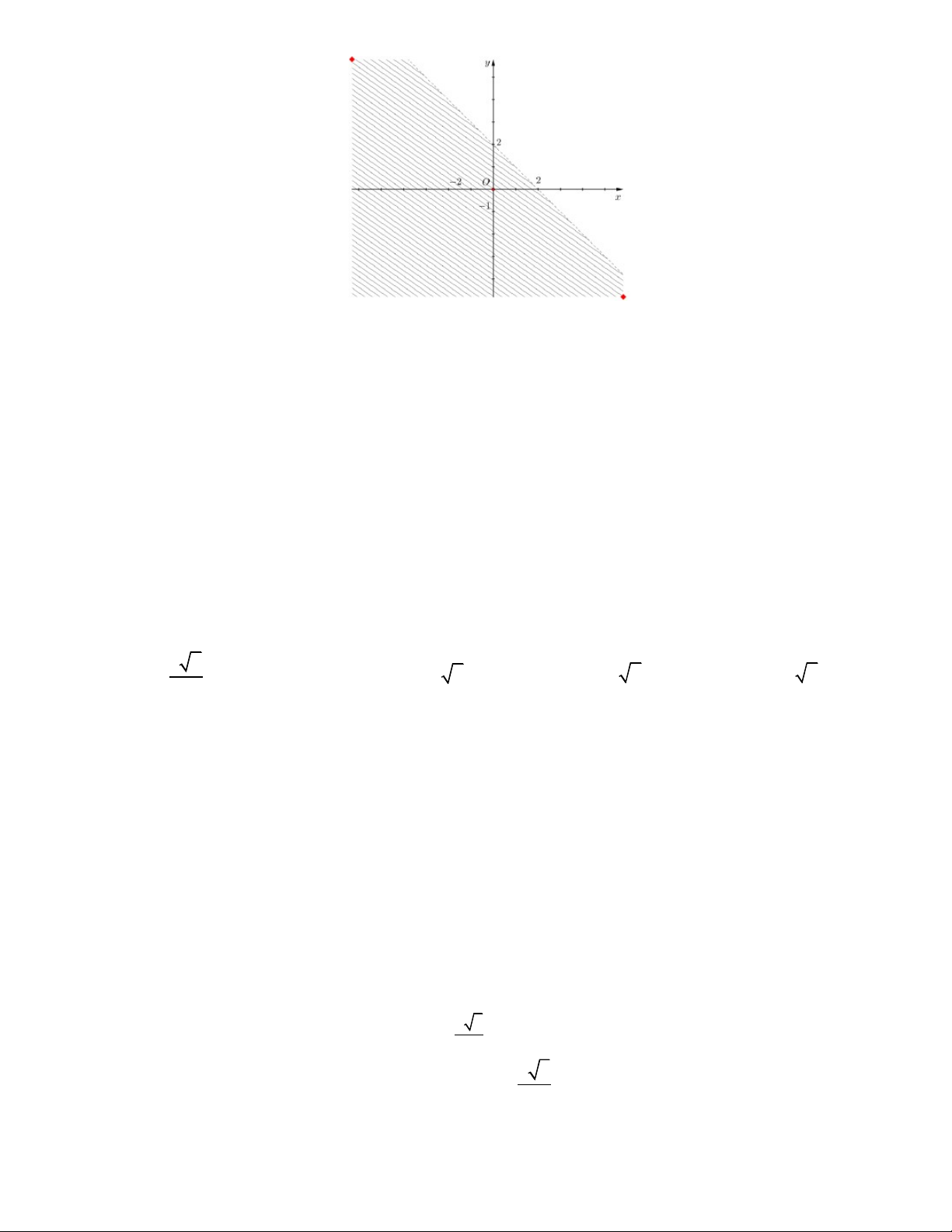 Câu 6: Cho hình vẽ bên, miền nghiệm được biểu diễn bởi phần không bị tô là miền nghiệm của bất