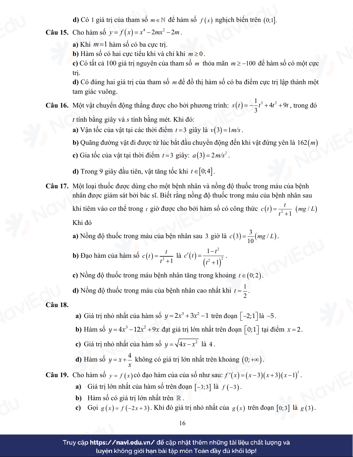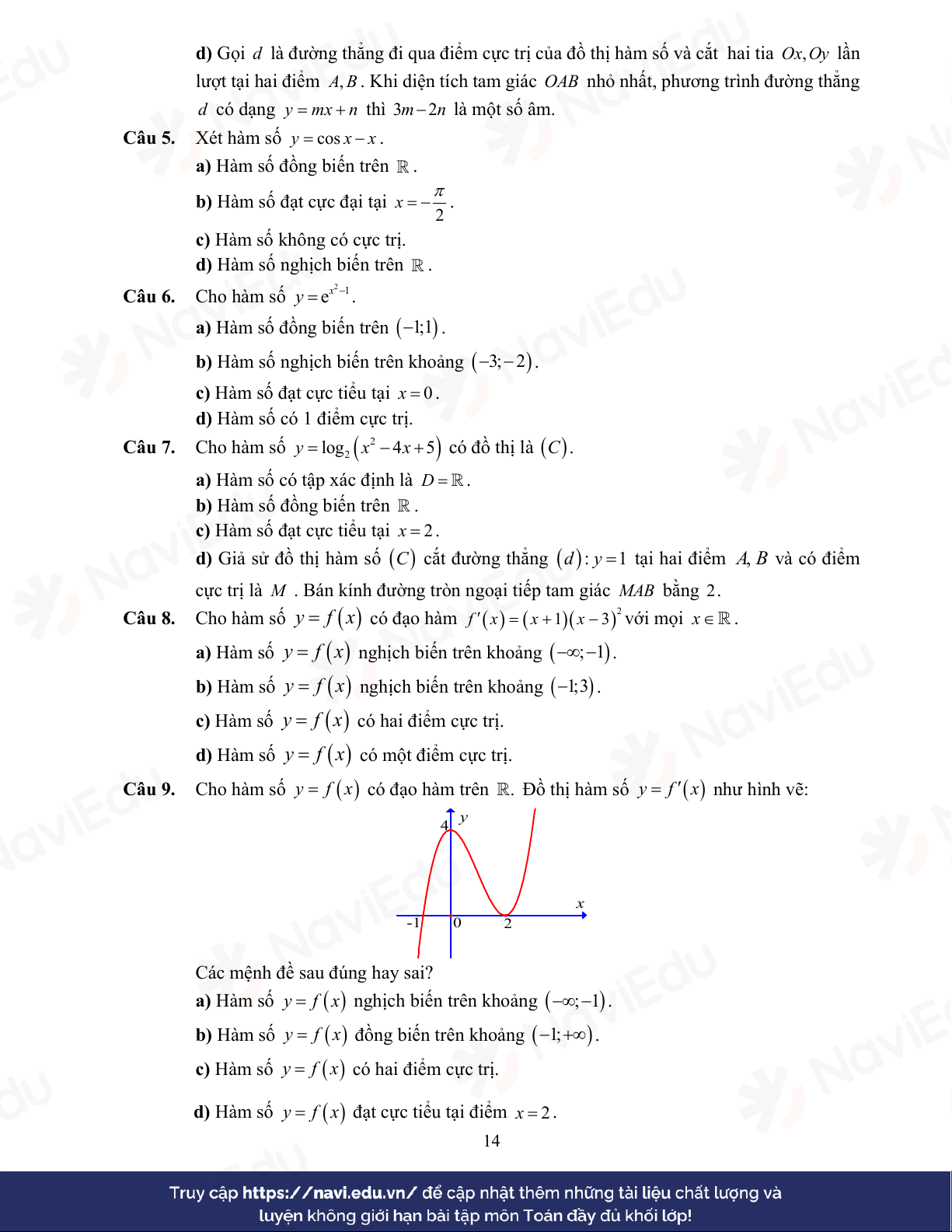 5. Ứng dụng đạo hàm để giải quyết một số vấn đề liên quan đến thực tiễn. 2 Vec tơ và hệ trục tọa