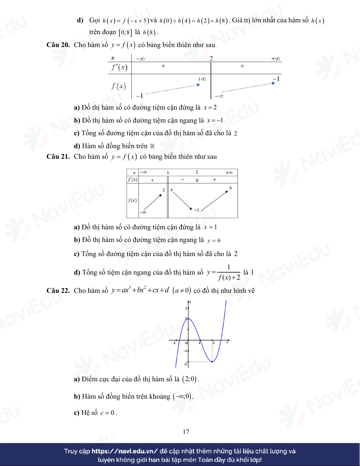 b) Hàm số đồng biến trên khoảng ; 0 . c) Hệ số c 0 . 17