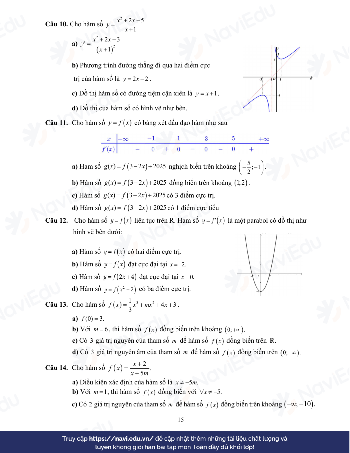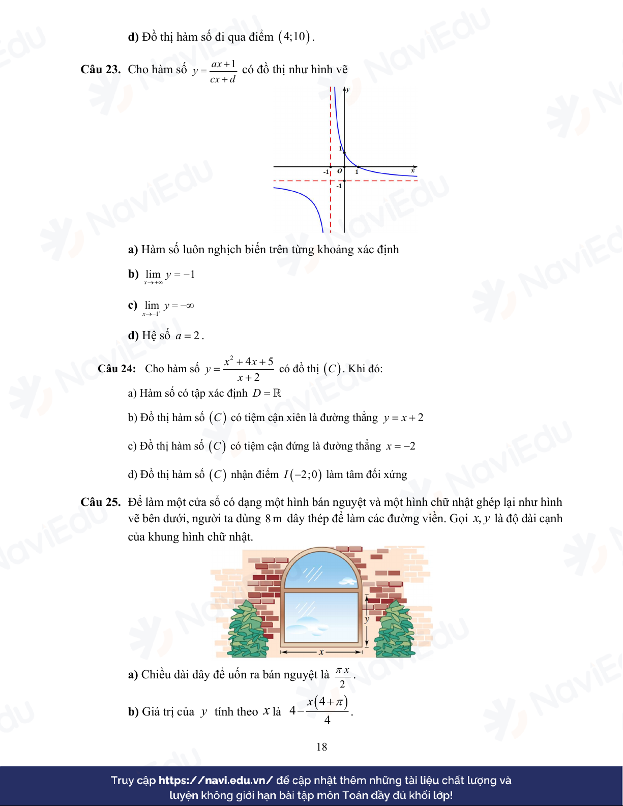 a) Hàm số luôn nghịch biến trên từng khoảng xác định b) lim y 1 x c) lim y x 1 d) Hệ số a 2 . 2 x 4x 5 Câu 24: Cho hàm số y