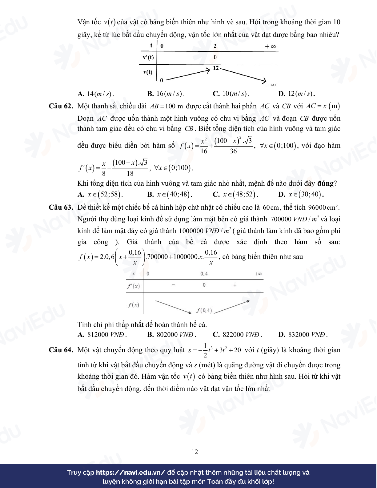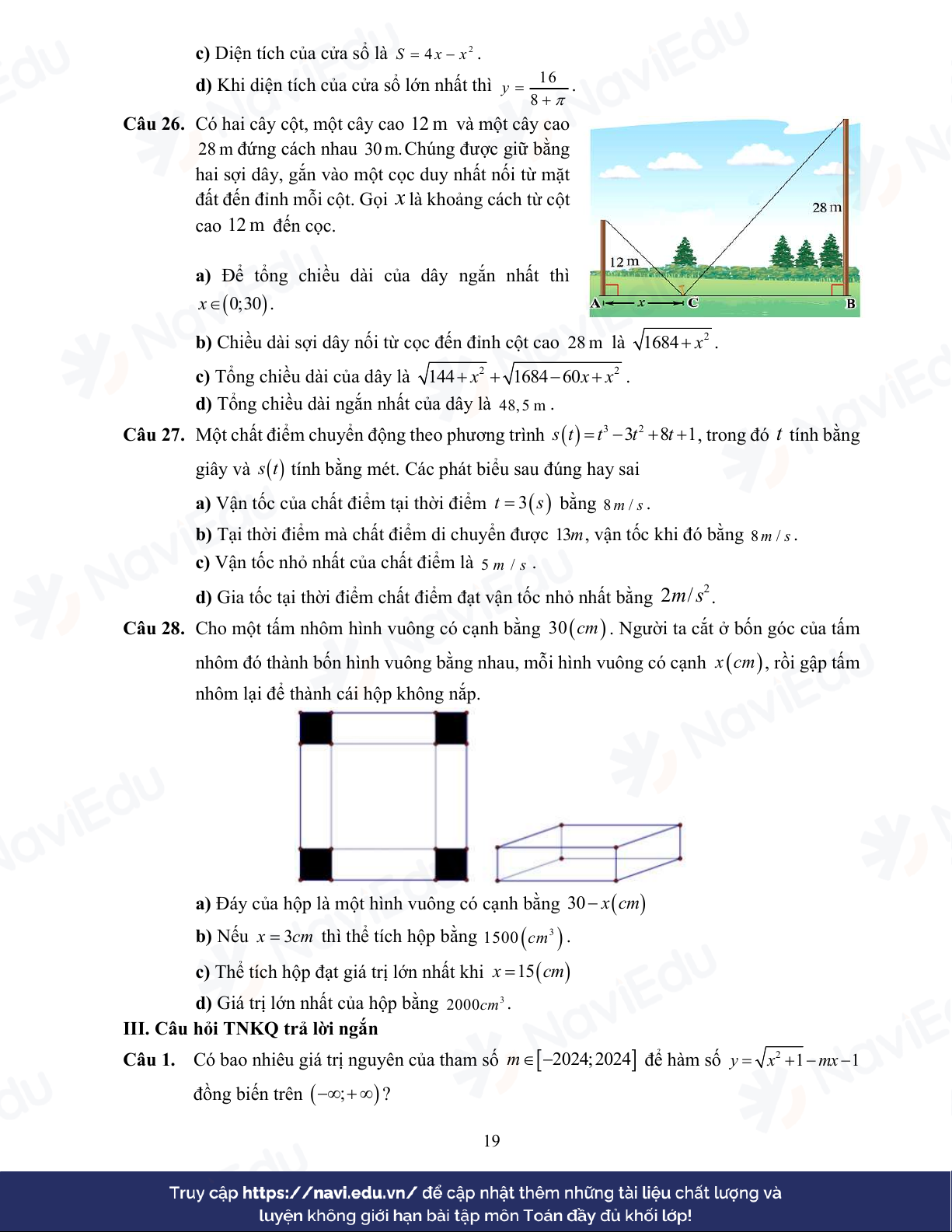 Câu 28. Cho một tấm nhôm hình vuông có cạnh bằng 30cm . Người ta cắt ở bốn góc của tấm