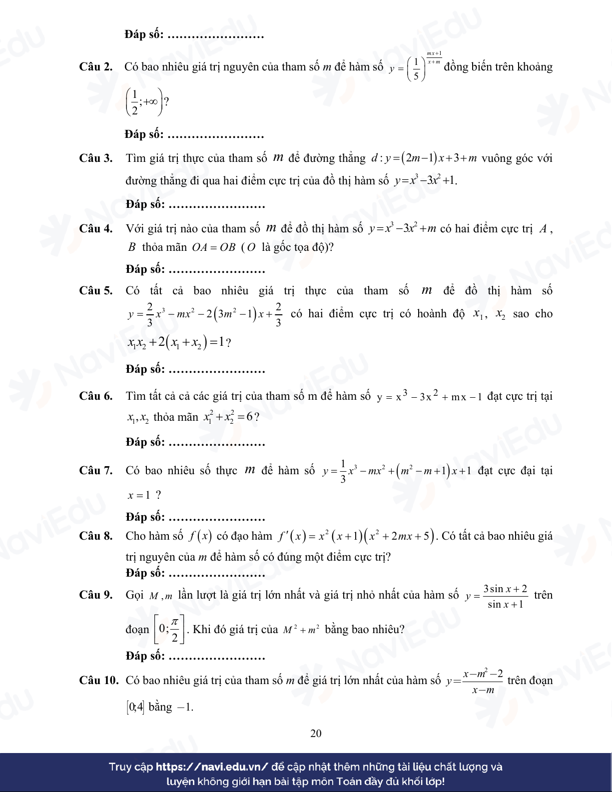 Câu 6. Tìm tất cả cả các giá trị của tham số m để hàm số 3 2