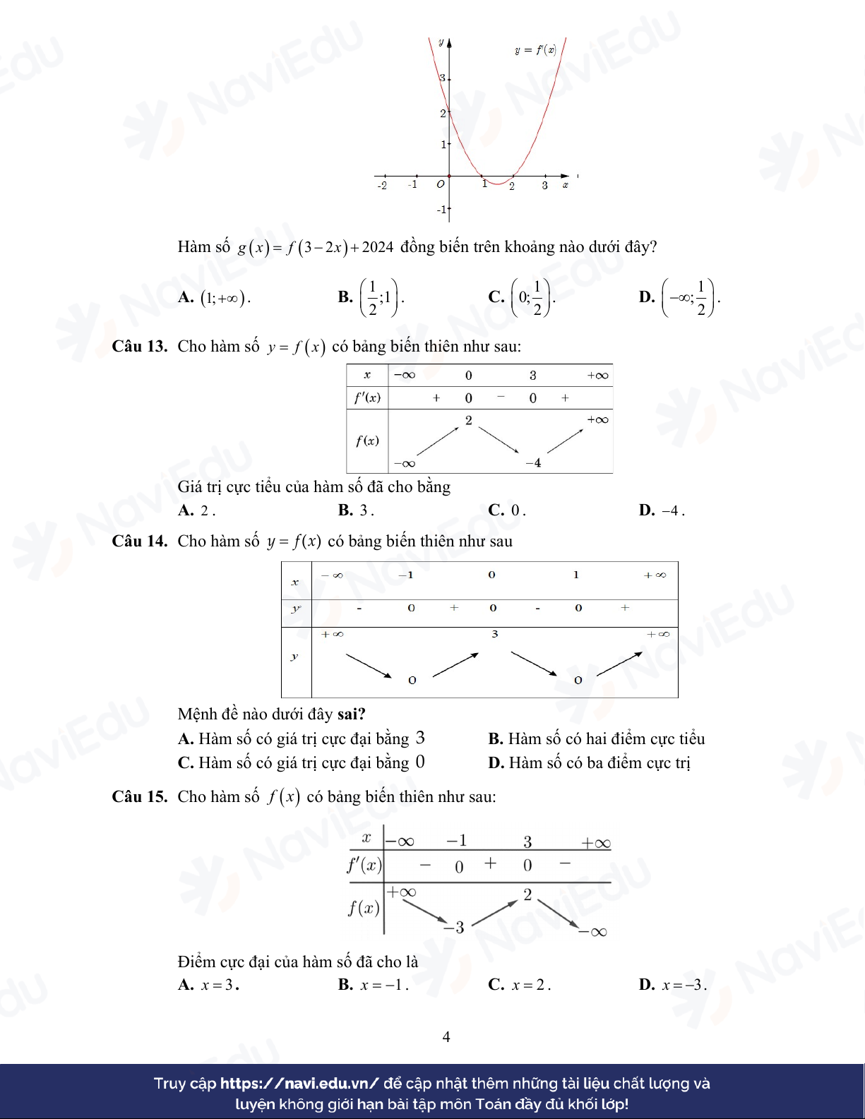 Câu 14. Cho hàm số y f (x) có bảng biến thiên như sau