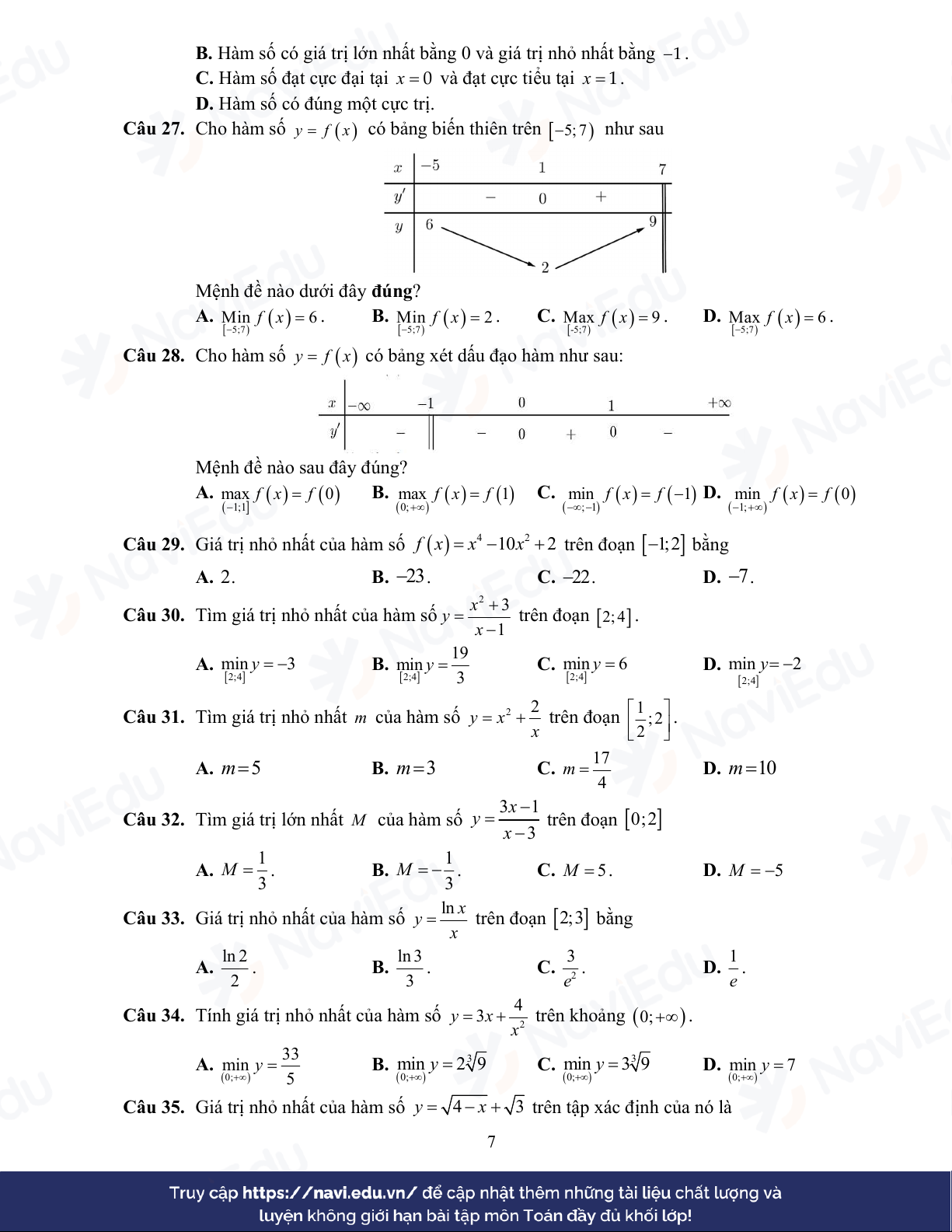 Câu 27. Cho hàm số y f x có bảng biến thiên trên 5;7 như sau