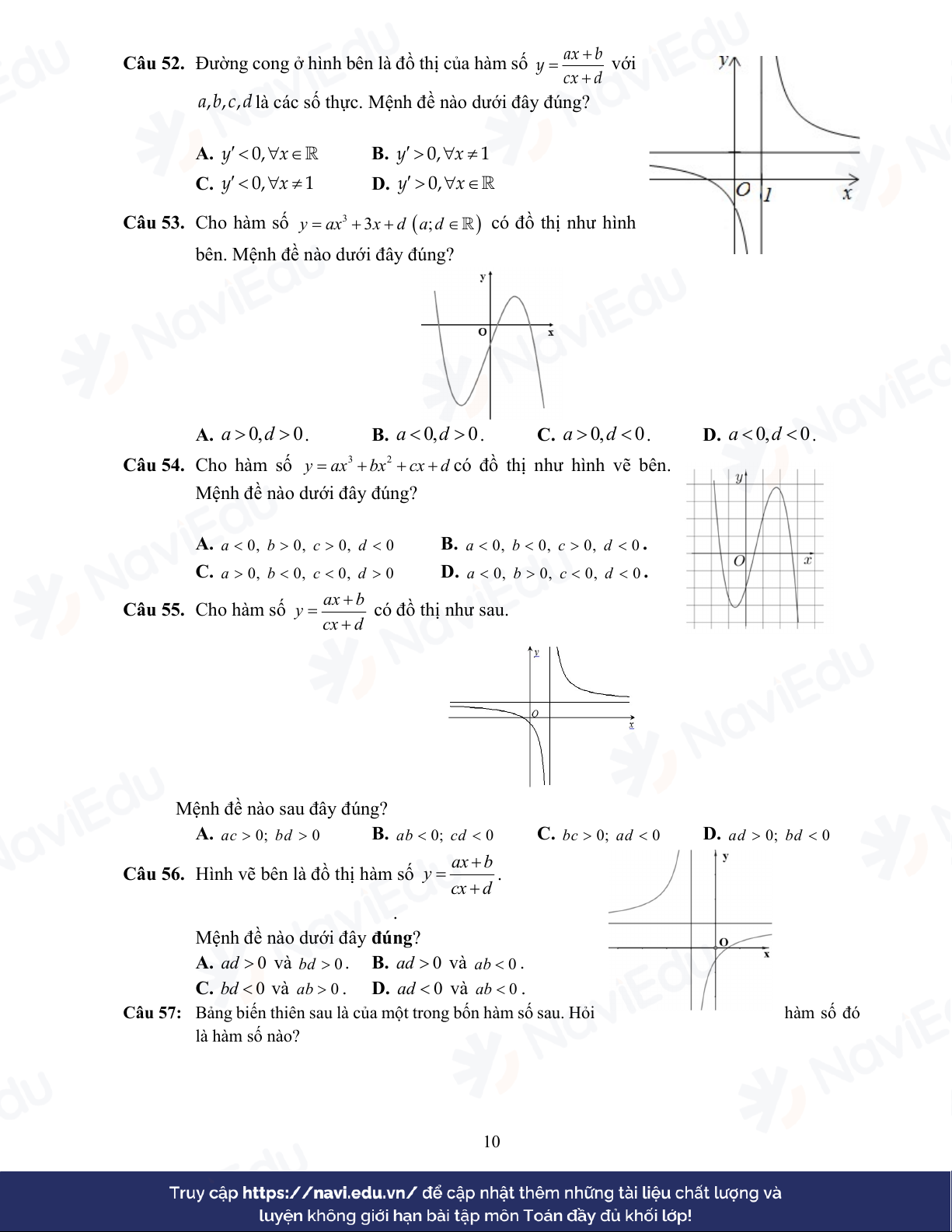 4. Khảo sát sự biến thiên và vẽ đồ thị hàm số bậc 3, phân thức b1/b1; b2/b1