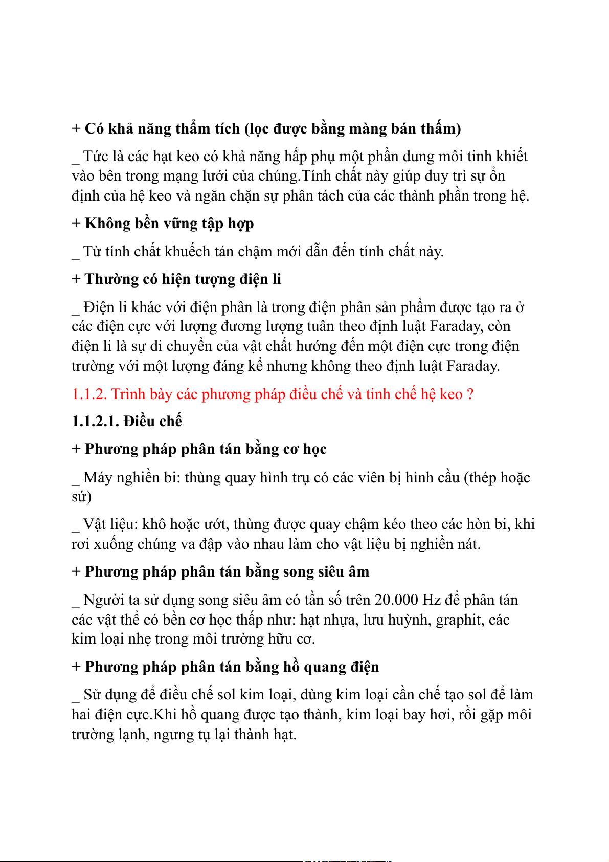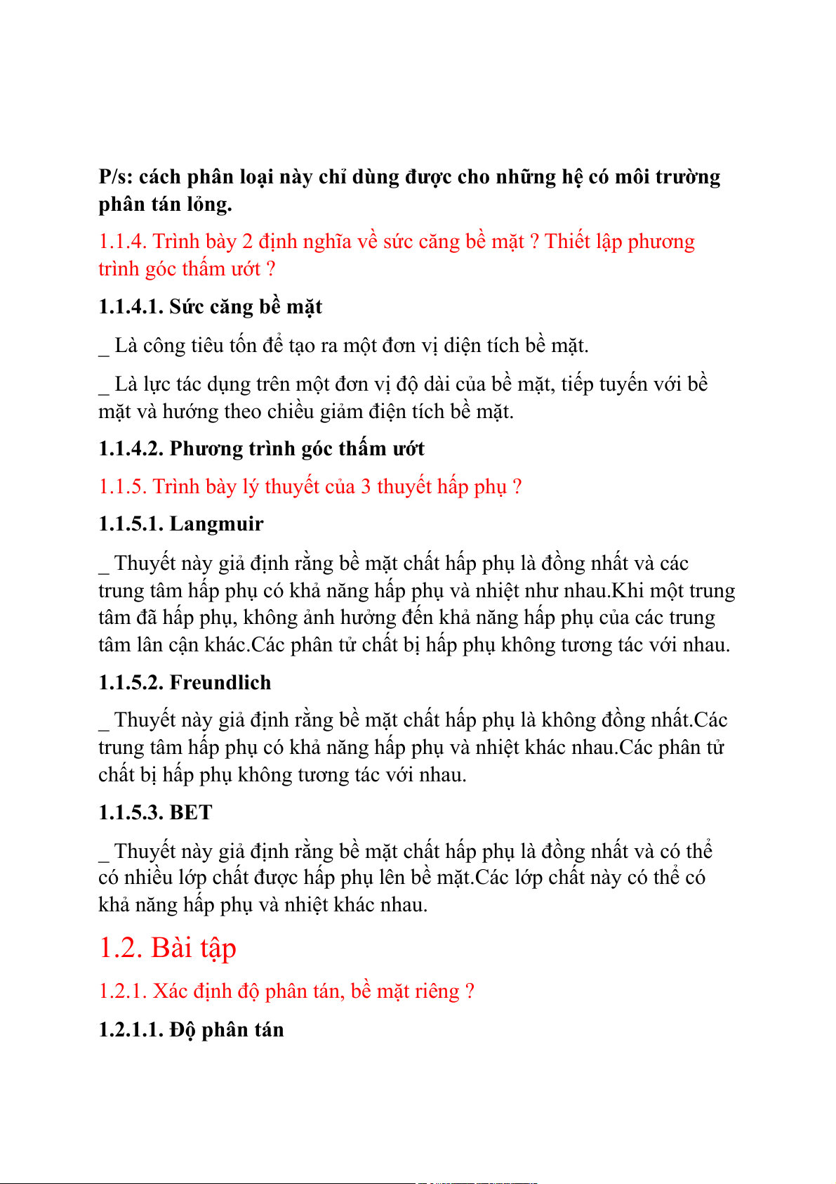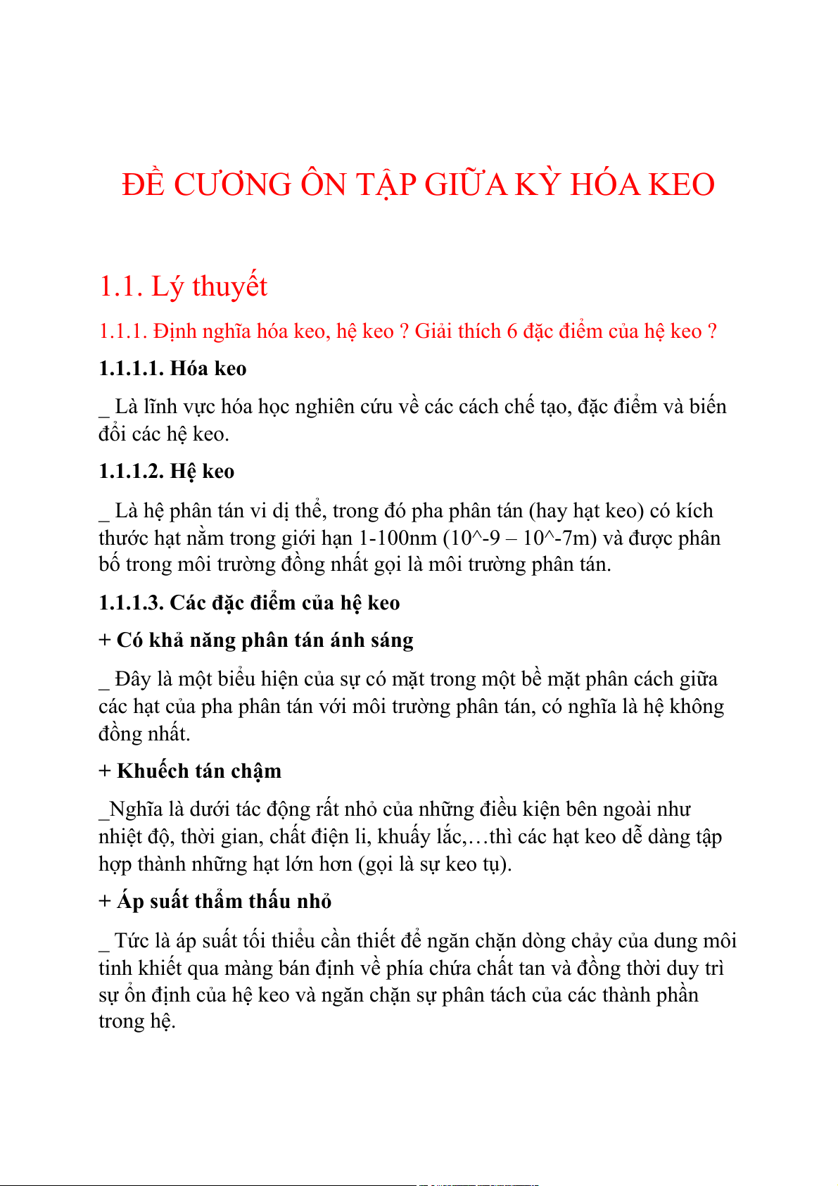 ĐỀ CƯƠNG ÔN TẬP GIỮA KỲ HÓA KEO 1.1. Lý thuyết