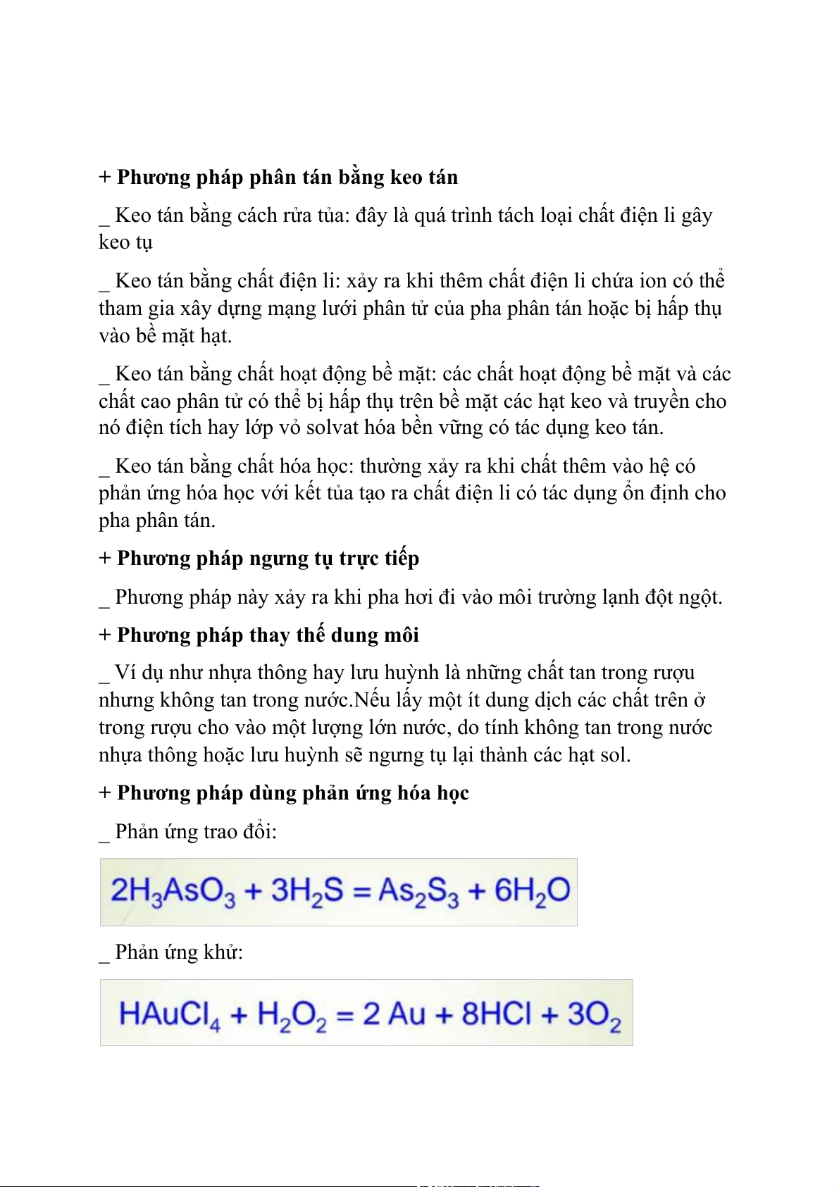 1.1.2. Trình bày các phương pháp điều chế và tinh chế hệ keo ? 1.1.2.1. Điều chế