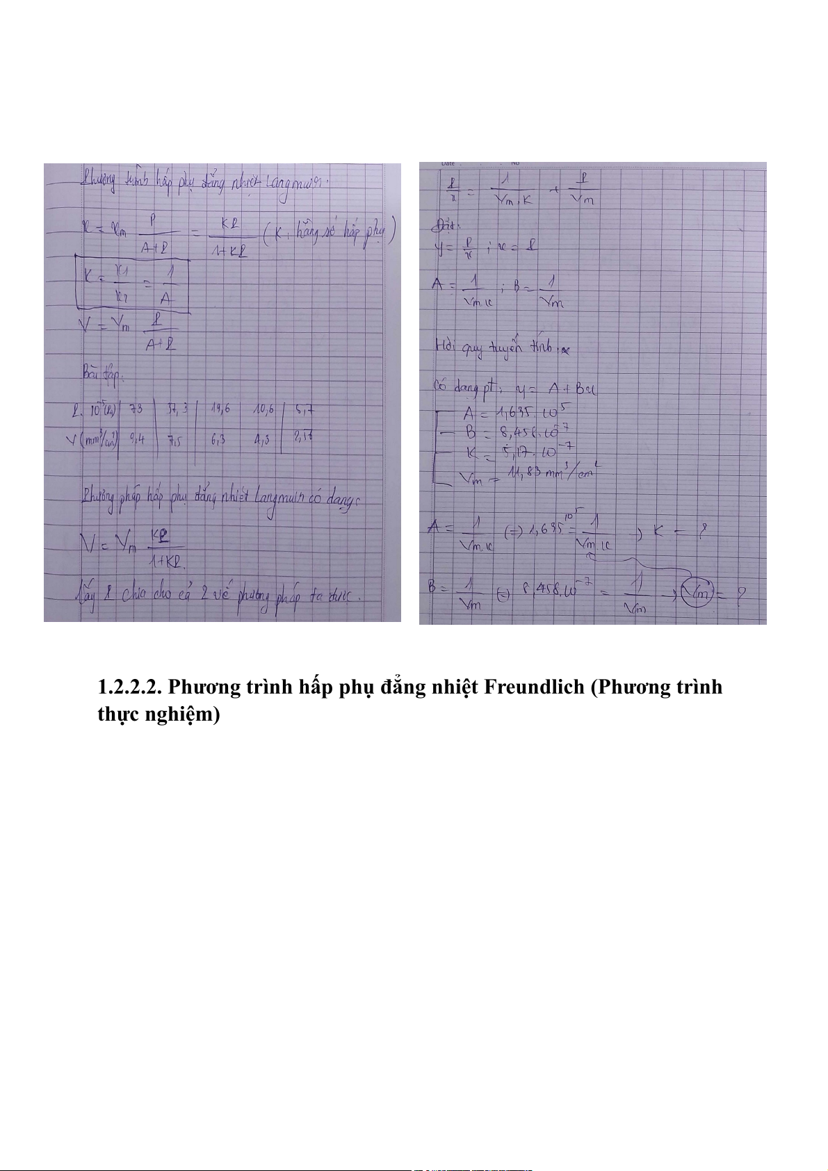 1.2.2.2. Phương trình hấp phụ đẳng nhiệt Freundlich (Phương trình thực nghiệm)