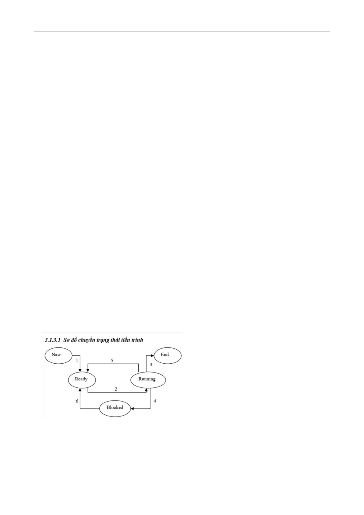 CPU, khi đó tiến trình từ trạng thái New được chuyển sang trạng thái Ready lOMoAR cPSD| 61552860