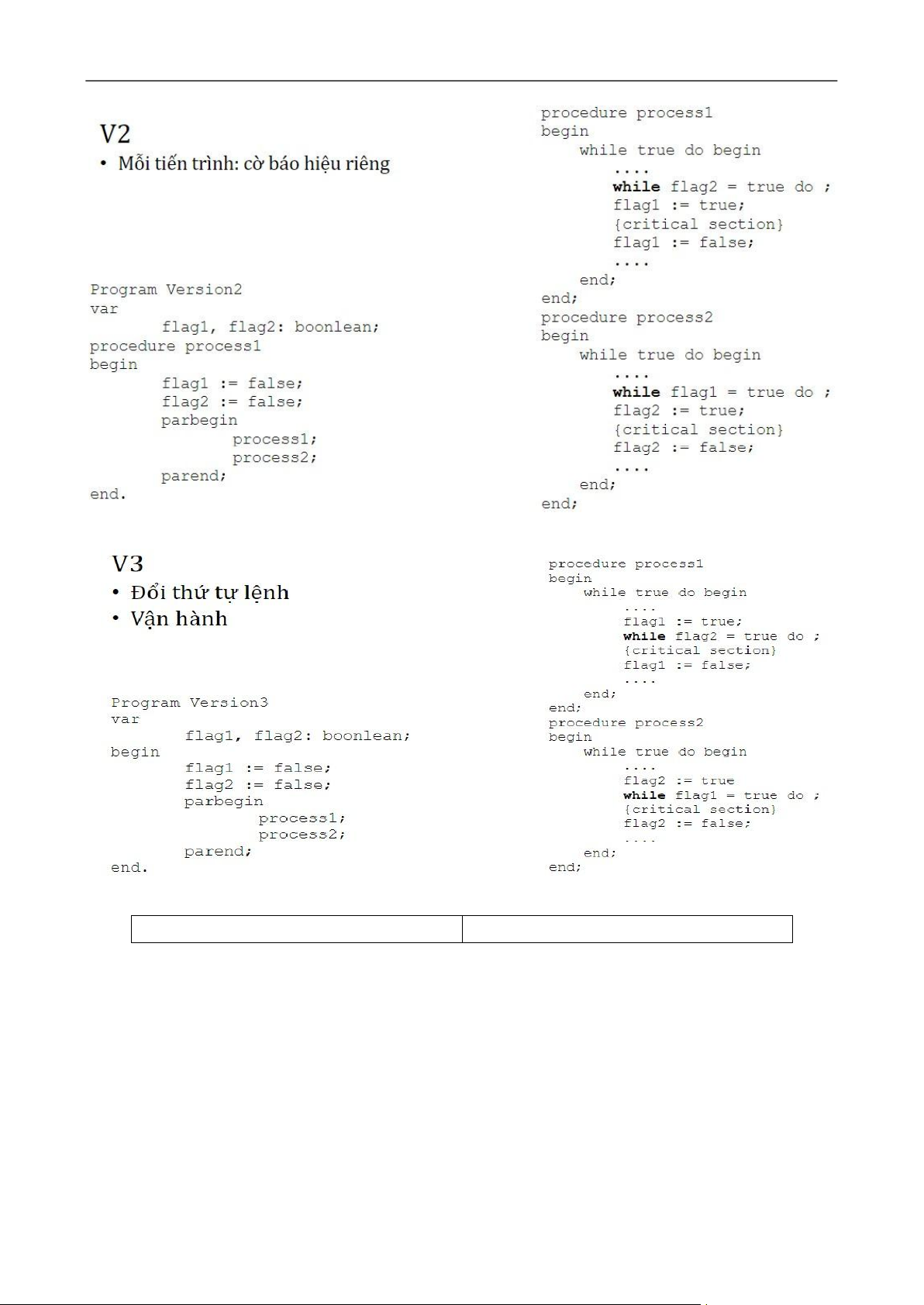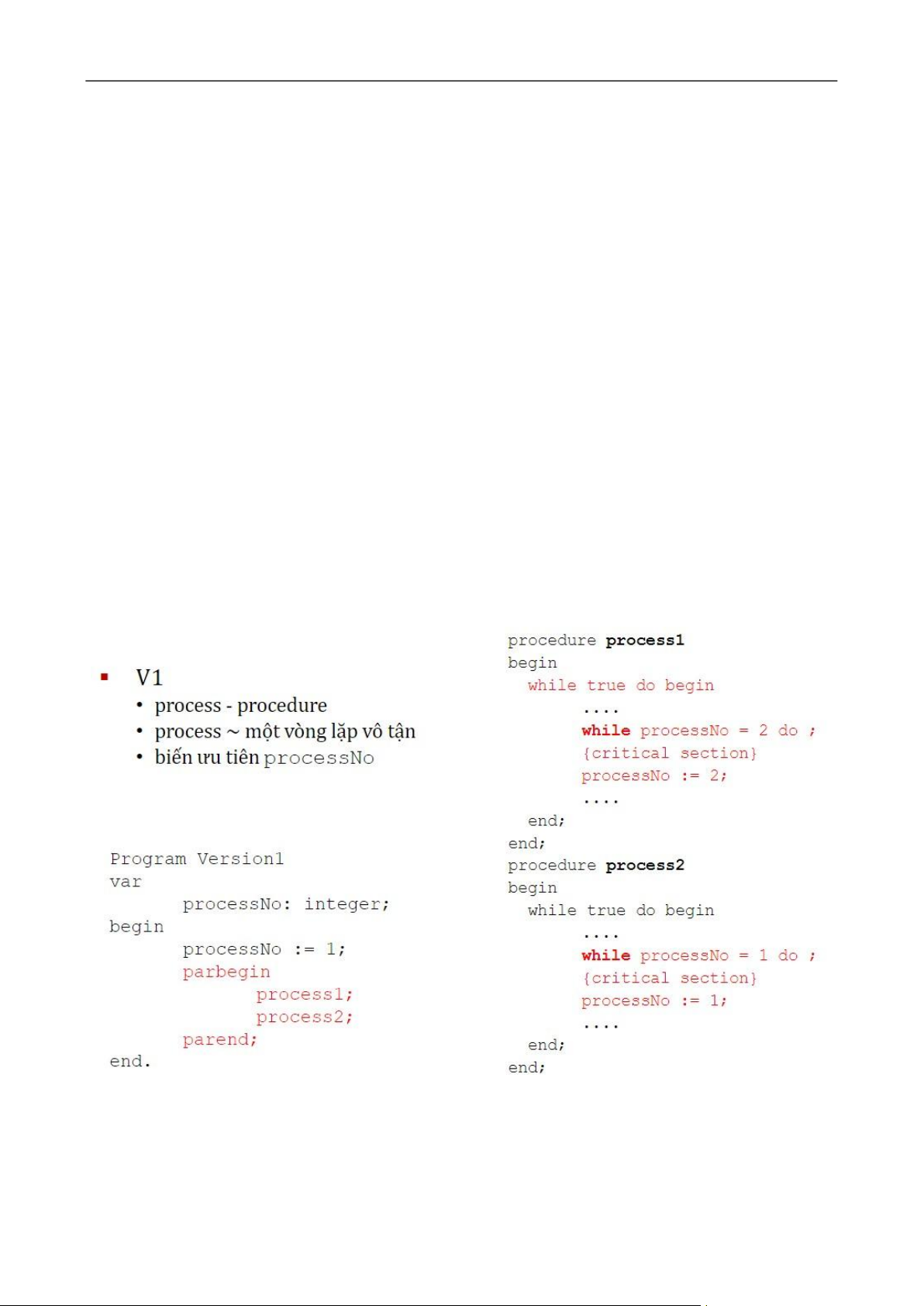 2. Thuật toán Dekker cài đặt loại trừ cho 2 tiến trình Version 1 Version 2 lOMoAR cPSD| 61552860