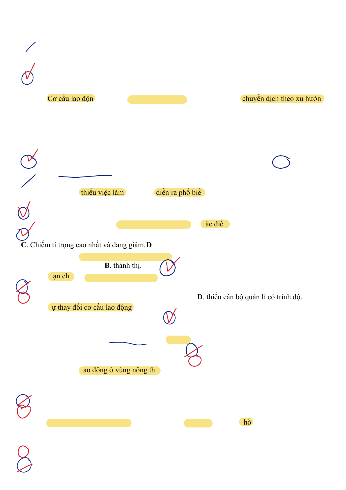 A. lực lượng lao động có trình độ cao còn ít. B. tỉ lệ người thất nghiệp và thiếu việc làm cao.