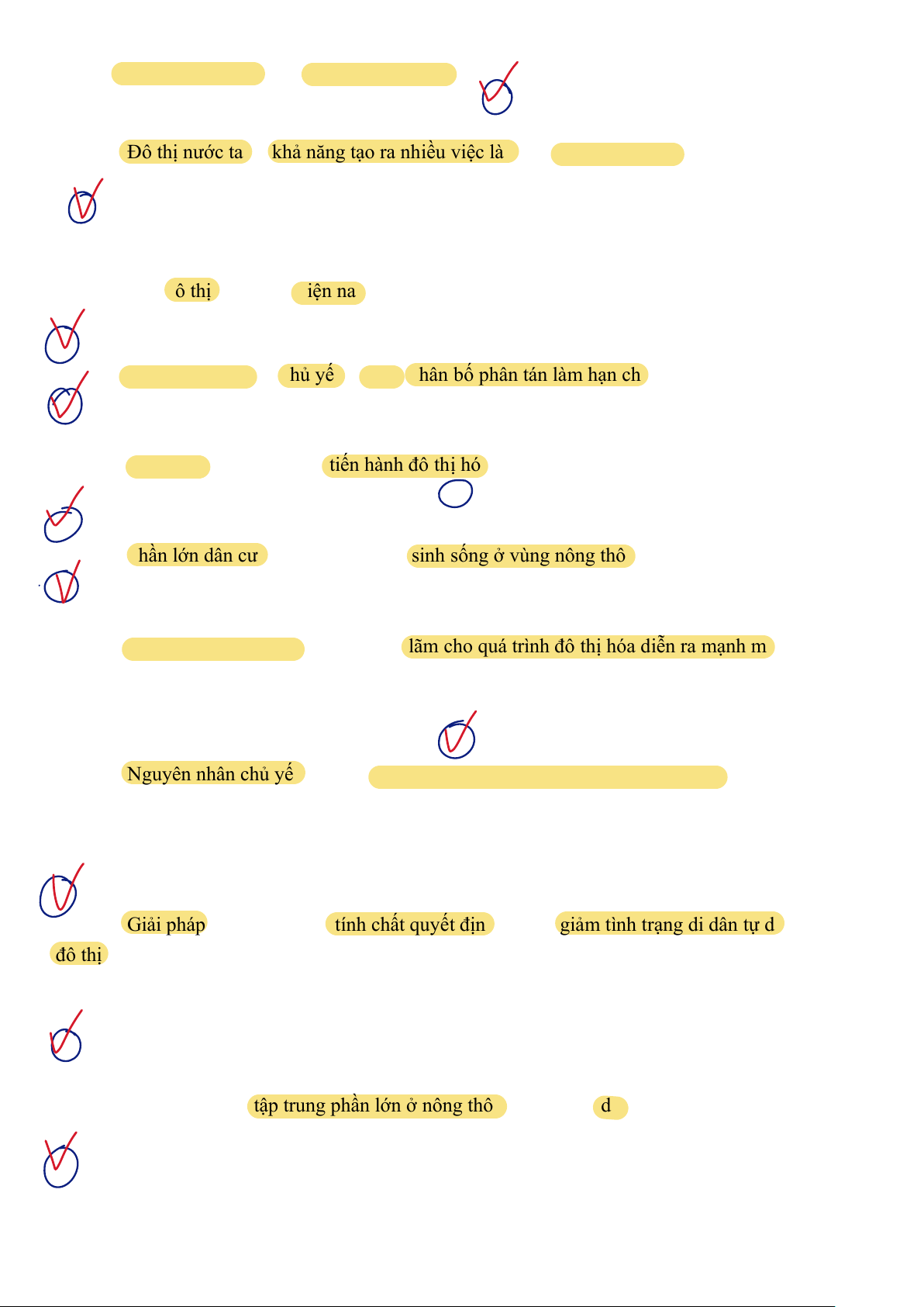 D. hình thành các đô thị, tăng tỉ lệ dân thành thị trong tổng số dân.