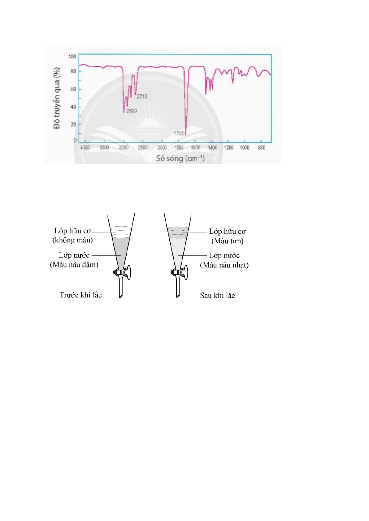 Câu 4: Thêm hexane (một hydrocarbon trong phân tử có 6 nguyên tử carbon) vào dung dịch iodine trong nước, lắc đều rồi để yên. Sau đó thu lấy lớp hữu cơ, làm bay hơi dung môi để thu lấy iodine.