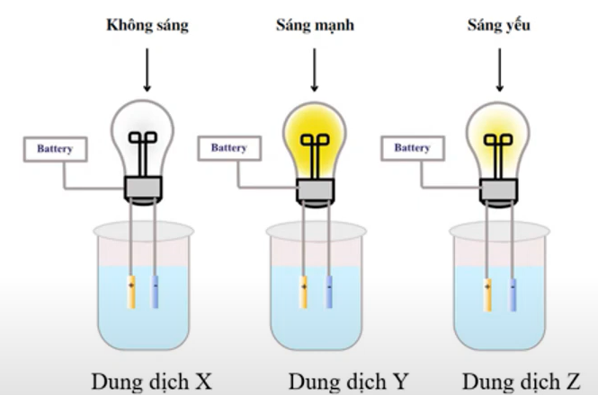 Câu 4: Tiến hành thử tính dẫn điện của một số dung dịch như hình dưới đây:
