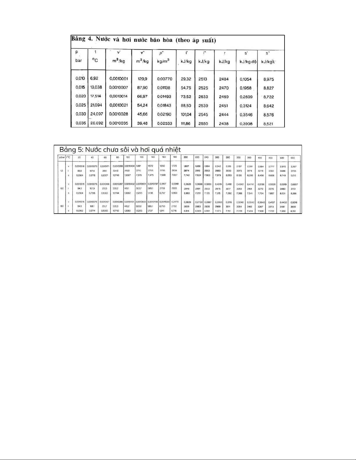 Bảng nước và hơi nước bão hòa (bảng 3 – tra theo nhiệt ộ, bảng 4 tra theo áp suất) ............. 2 2.2
