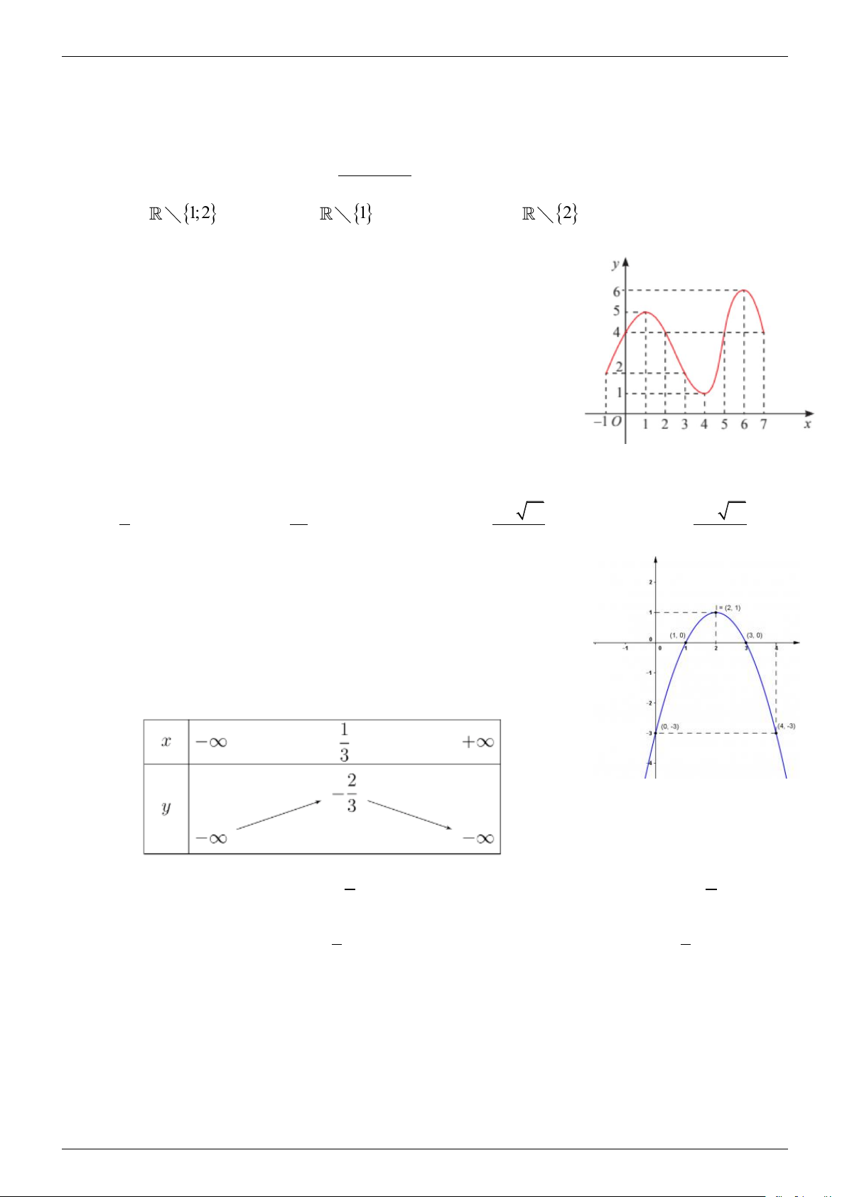 Câu 1. Tập xác định của hàm số x 1 y = là 2 x − 3x + 2 A. D = 1; 2 B. D = 1 C. D = 2