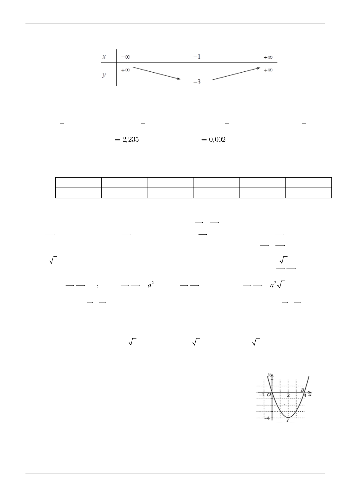: y = 2x − 4x + 3 bằng A. 2 − . B. 2 . C. −1. D. 1. Trang 16